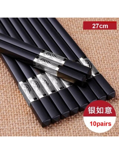 10 par 24/27cm pałeczki antypoślizgowe żywności trzymać Food Grade z tworzywa sztucznego + klip ze stopu Sushi gorący kociołek pałeczki wielokrotnego użytku zastawa stołowa prezent