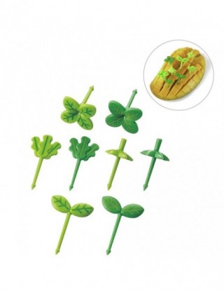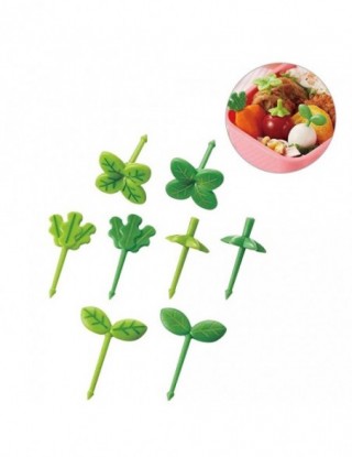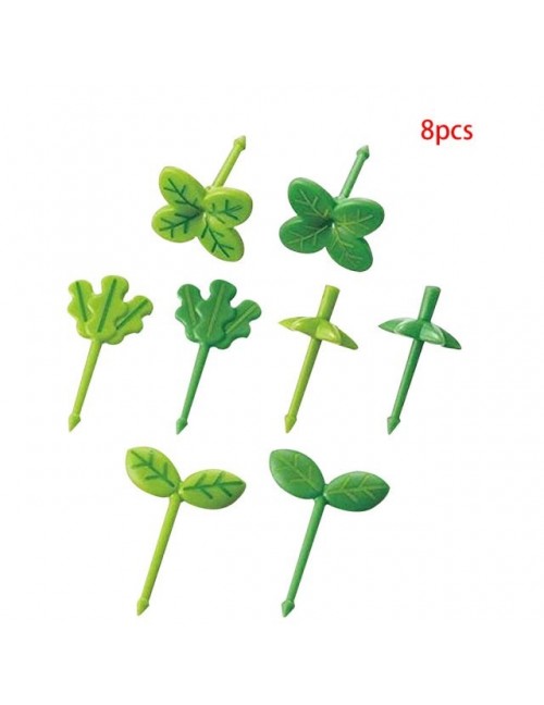 8 sztuk owoce widelec wykałaczka liście plastikowa dekoracja pudełko na Lunch akcesoria Bento mała sałatka Tiny widelec Mini cia