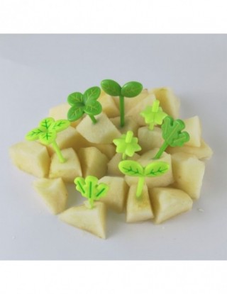 8 sztuk owoce widelec wykałaczka liście plastikowa dekoracja pudełko na Lunch akcesoria Bento mała sałatka Tiny widelec Mini ciasto wybiera dla dzieci