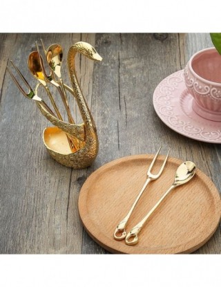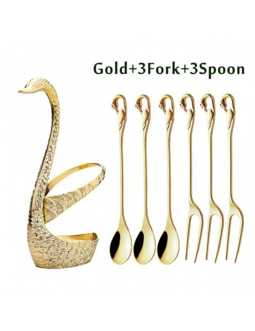 7 sztuk Swan podstawa zestaw widelców ze stali nierdzewnej sałatka deser widelce łyżeczka do kawy ciasto zastawa stołowa Zero od