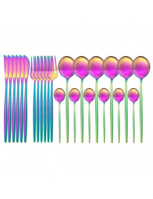 JANKNG 24 sztuk złota matowy zestaw sztućców sztućce ze stali nierdzewnej zestaw noży widelec łyżka SilverwareTableware kuchnia zestaw sztućców