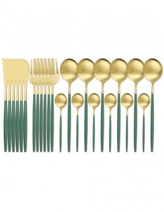 JANKNG 24 sztuk złota matowy zestaw sztućców sztućce ze stali nierdzewnej zestaw noży widelec łyżka SilverwareTableware kuchnia zestaw sztućców
