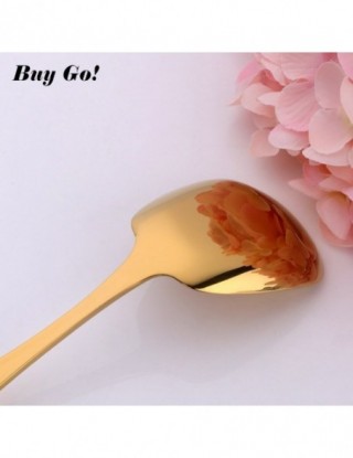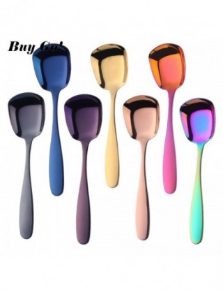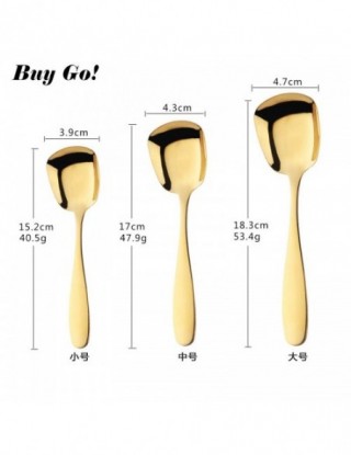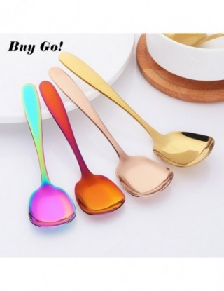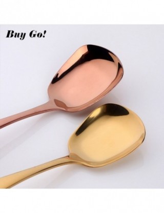 1PC łyżka do ryżu ze stali nierdzewnej S M L kwadratowa łyżka kadzi złota deser lody łyżka stołowa dla dzieci restauracja zastawa stołowa do kuchni