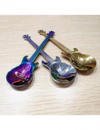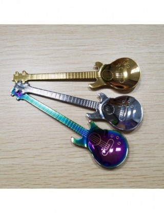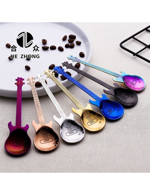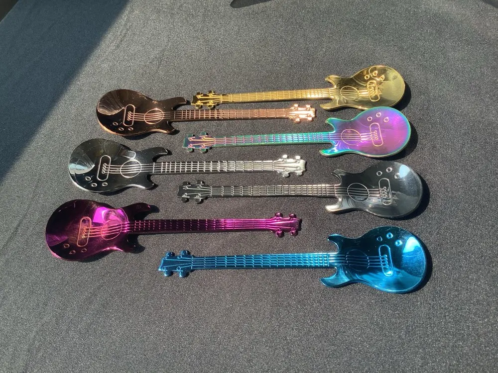 1 szt. Gitara ze stali nierdzewnej w kształcie miłości łyżeczka do kawy łyżeczka dzieci łyżka nowe piękne 7 kolorów kawy herbaty
