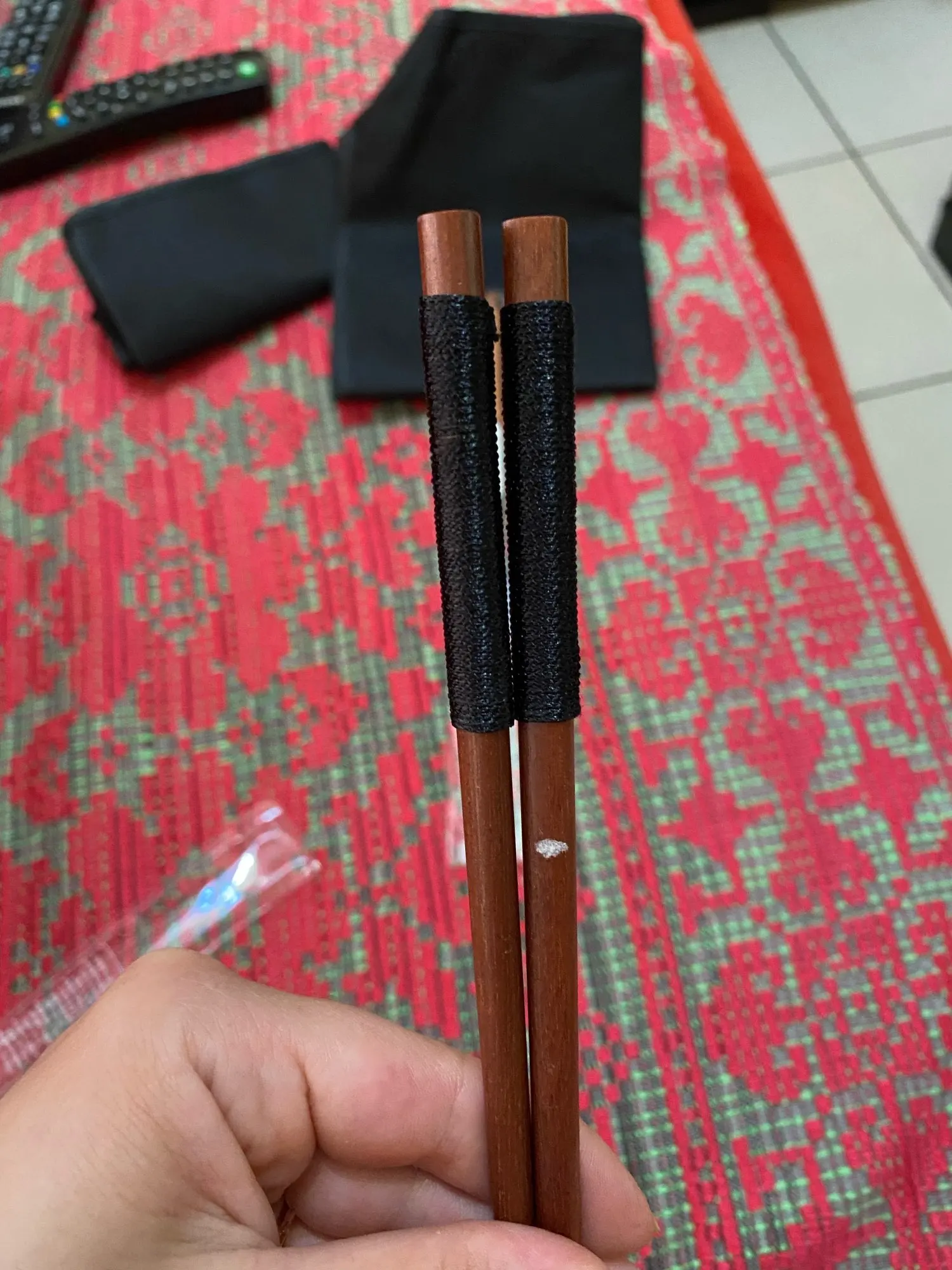 They look really nice, and are very comfortable to use. There's no smell. One chopstick is slightly lighter then the other but it's not that noticeable and for this price it's not an issue. I didn't communicate with the seller.