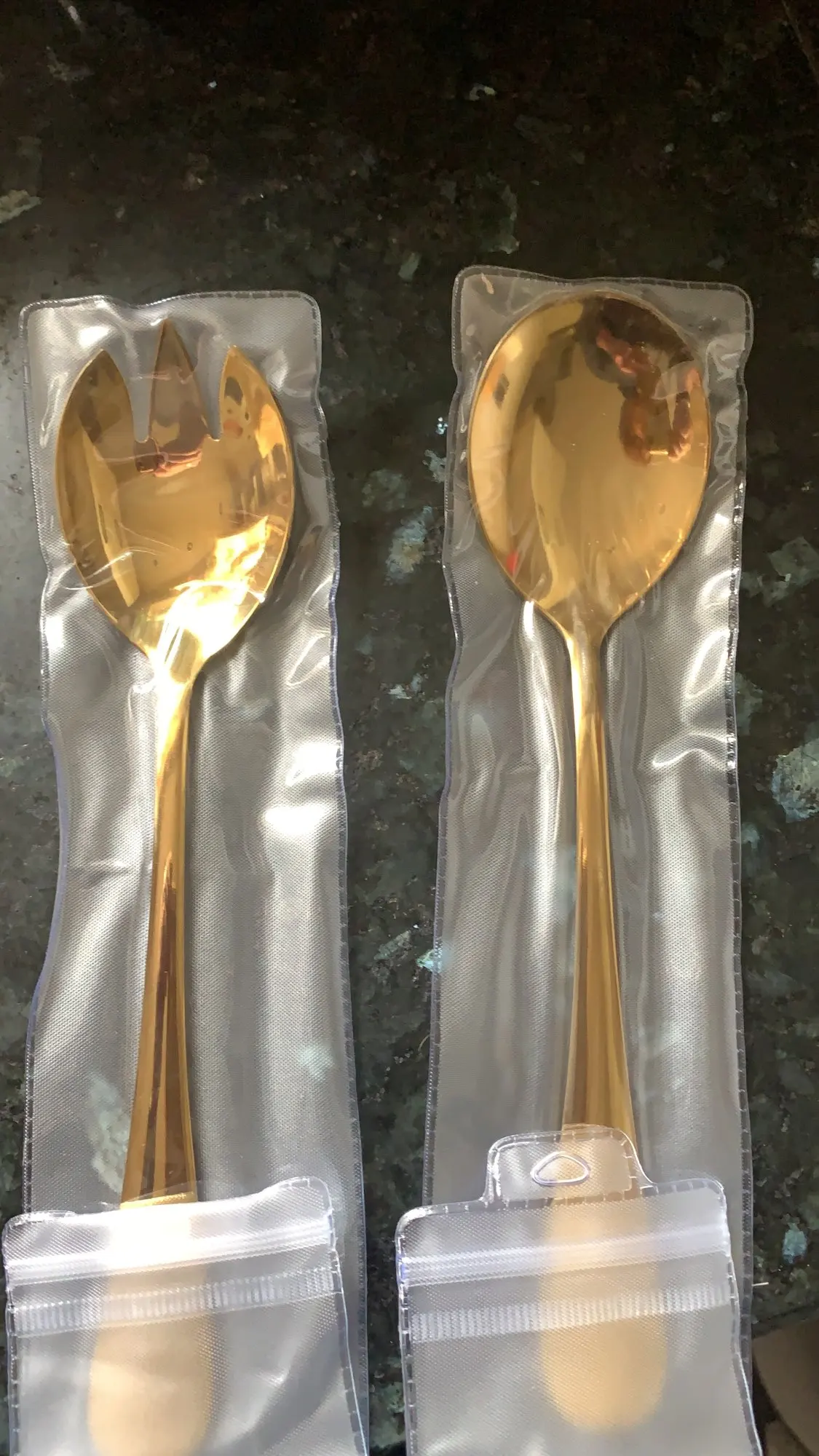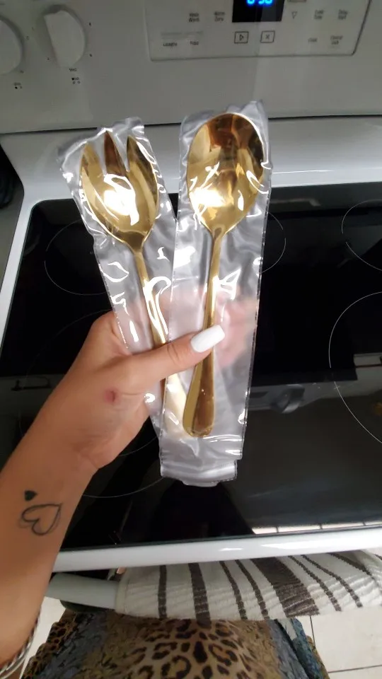 Spklifey złoty łyżka do sałatek widelec 2 sztuk łyżka do sałatek ze stali nierdzewnej stalowe sztućce zestaw łyżka do serwowania zestaw kolorowe unikalne łyżki