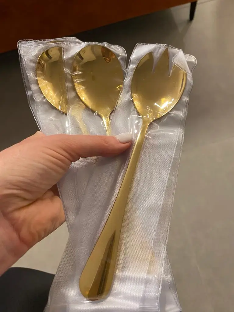 Spklifey złoty łyżka do sałatek widelec 2 sztuk łyżka do sałatek ze stali nierdzewnej stalowe sztućce zestaw łyżka do serwowania