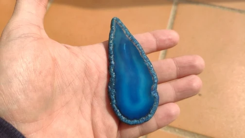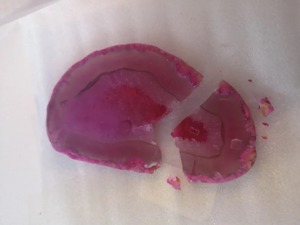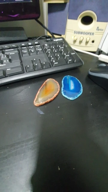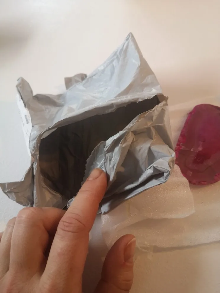 Kamien dotarl cały, ale drugi z paczki byl niestety polamany. Bardzo slabo zapakowane. Kamienie ladne, ale nie wiem czy kolory sa naturalne, sa chyba zbyt intensywne.