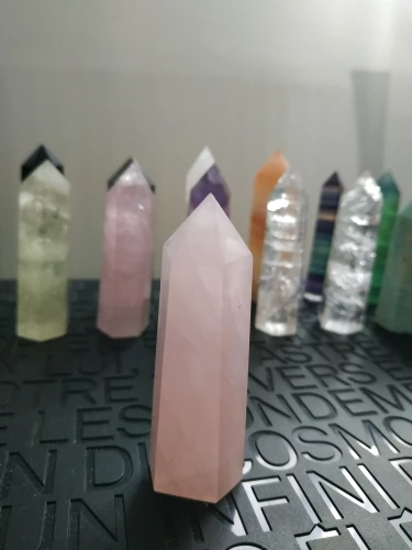 Naturalna róża kryształowa kwarcowy punkt kamień leczniczy sześciokątne pryzmaty 50-80mm Obelisk różdżka leczenie ozdoby kamień