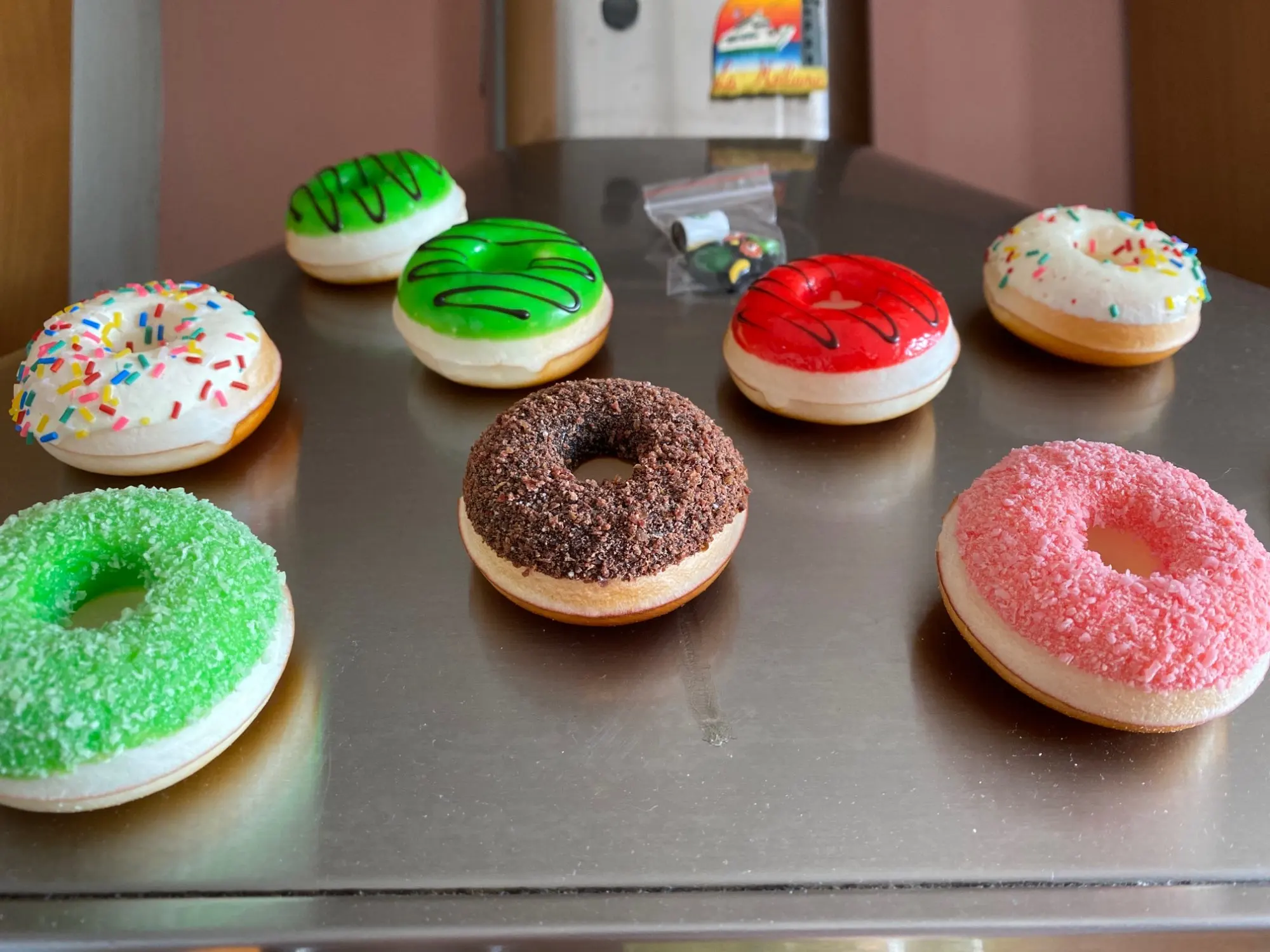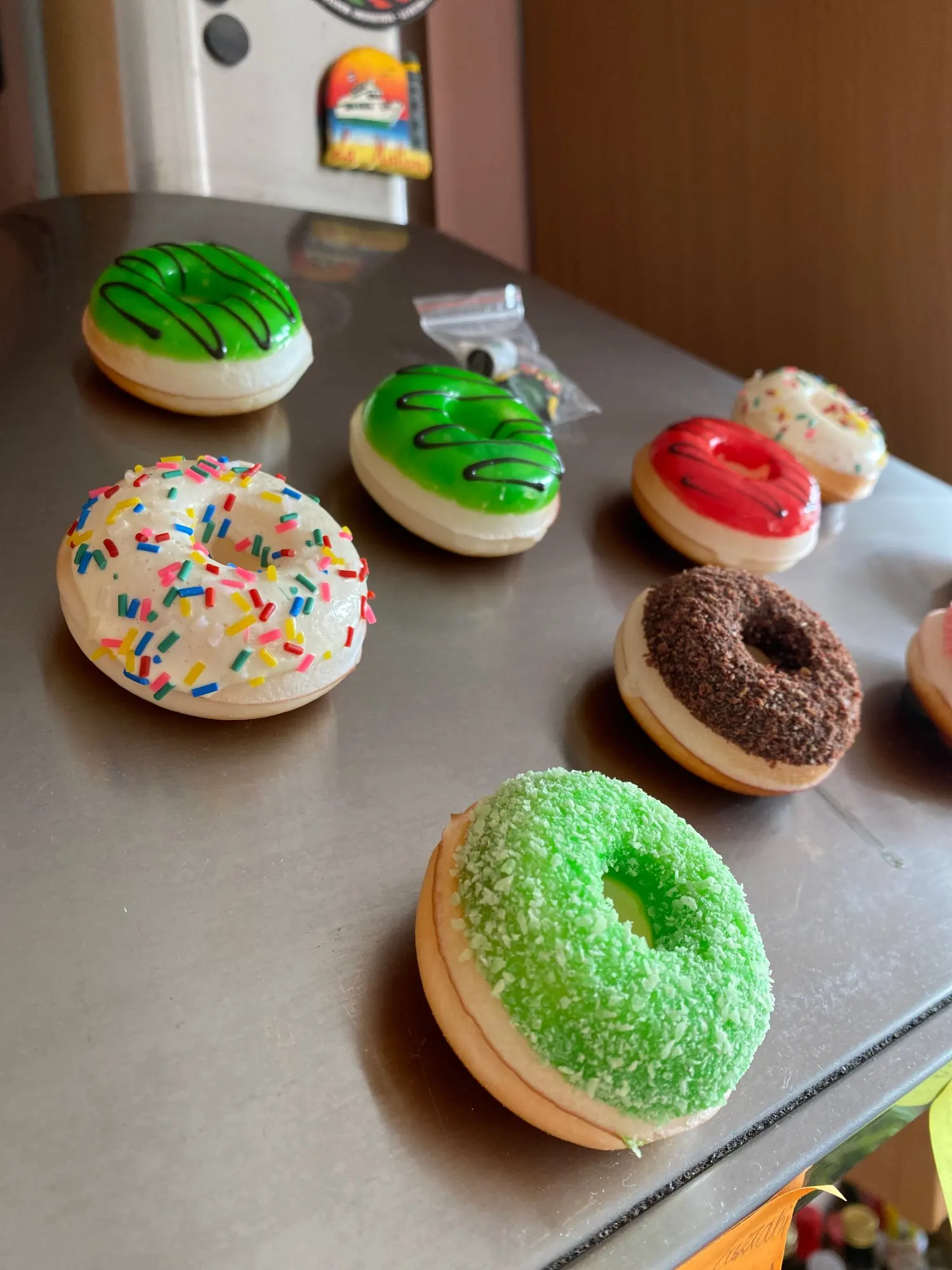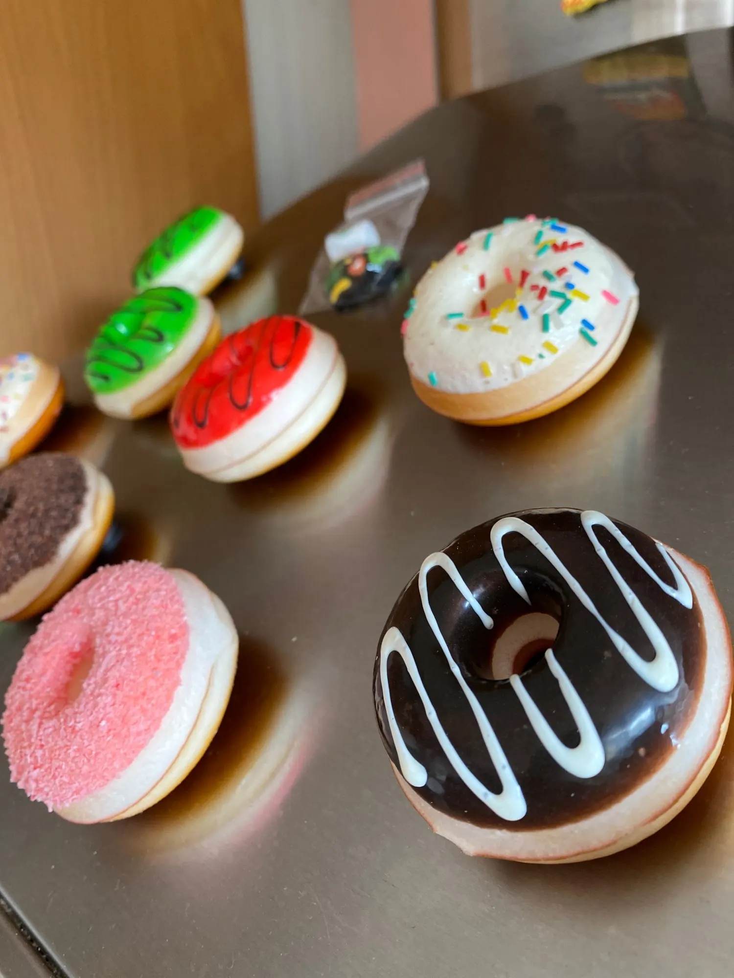 4. Wykonany z żywicy, bezpieczny i zdrowy, mały i okrągły kształt pączka, przymocowany do lodówki, który może przykleić się do karteczki,