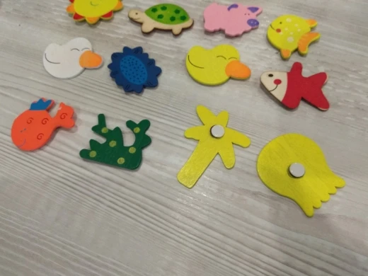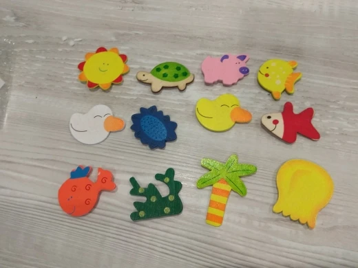zwierzątka są drewniane, magnes jest malutki. dostałam całkiem inne wzory niż wybrane na aukcji.