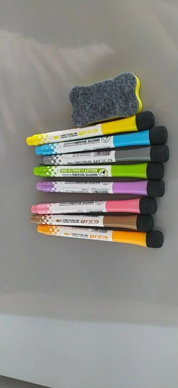 ● Super cenne zestawy-pakiet zawiera: 3 * markery magnetyczne, 1 * gumkę magnetyczną i 1 * tablicę. Wszystko jest magnetyczne, więc zawsze będą tuż obok tablicy łatwe wymazywanie, więcej zabawy dla dzieci i rodziny do malowania lub pisania notatek itp. Idealny kompletny zestaw do domu, biura lub klasy.