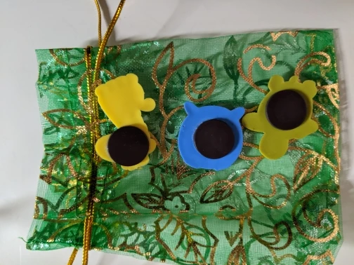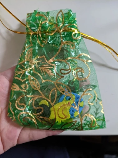 very cute magnet. just like the picture. come in a beautiful bag. very happy with the purchase.