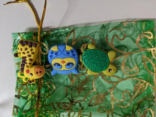 very cute magnet. just like the picture. come in a beautiful bag. the magnet is a little big and shows up a little outside the giraffe head. but, over all very happy with the purchase.