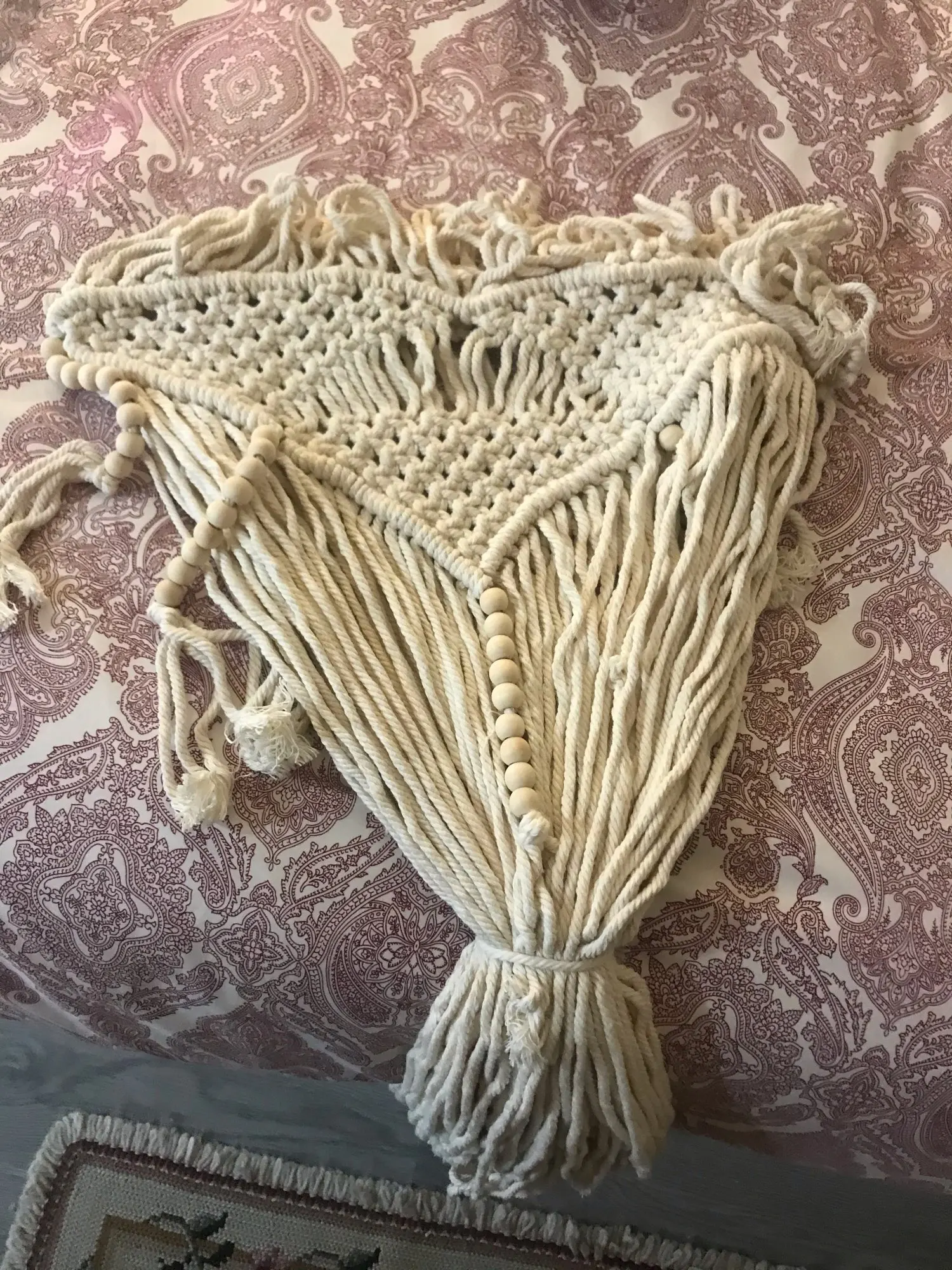 3. Prosty kształt na pierwszy rzut oka, fibre art, tło, dekoracja ścienna, styl skandynawski, ślub domowy, dekoracyjna dekoracja ścienna w tle, sofa dekoracja do tła