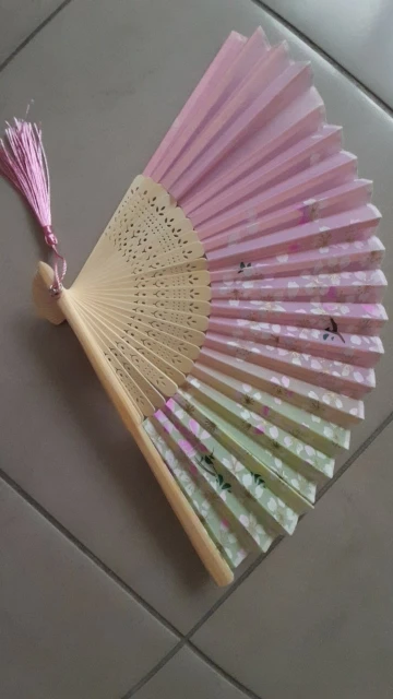 Jest to bardzo piękny bambusowy składany wentylator ręczny, wykonany z drewna o eleganckim wzorze