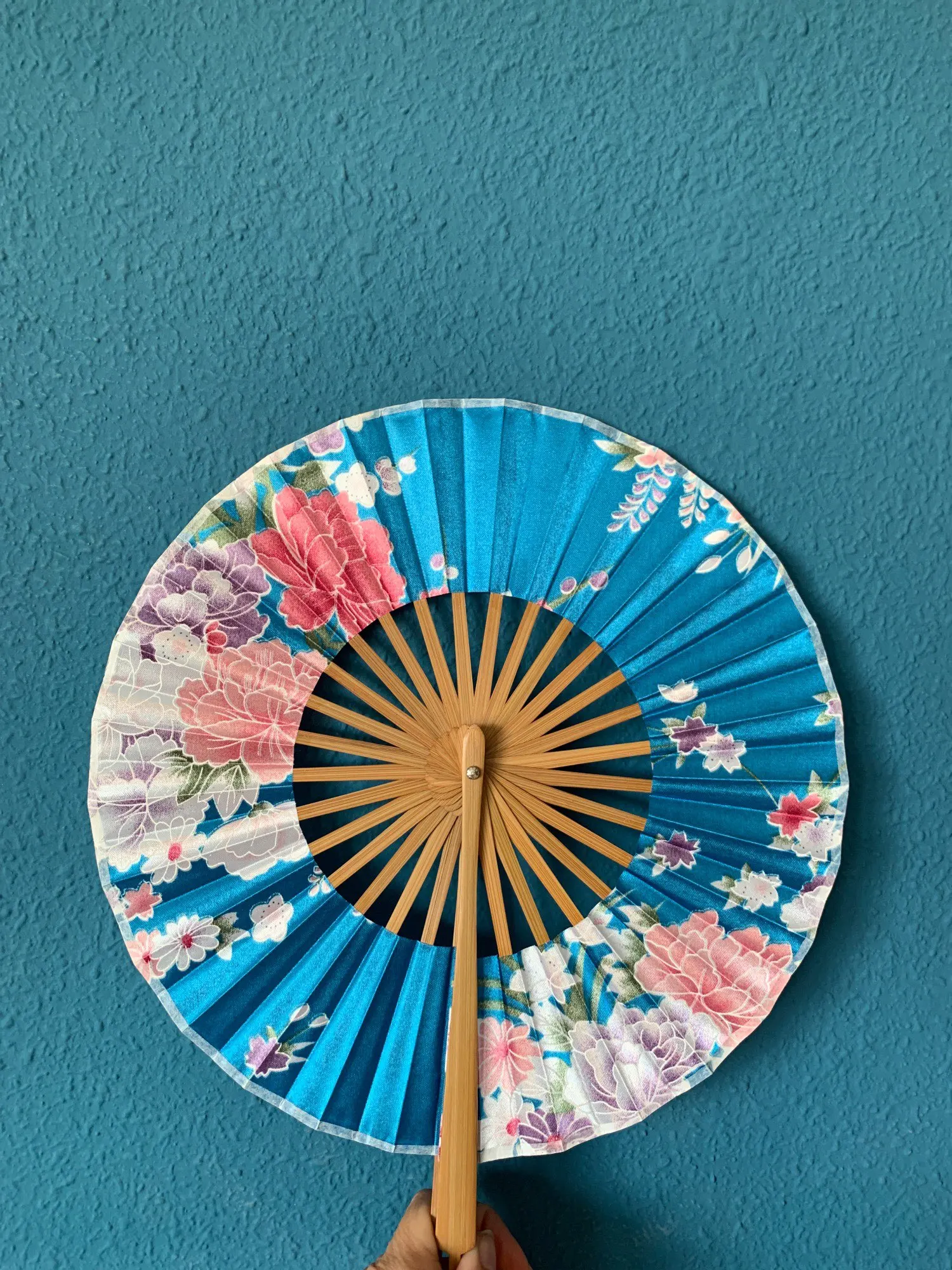 Japoński kwiatem Sakura kieszonkowy składany wentylator ręczny okrągły okrąg Party Decor prezent