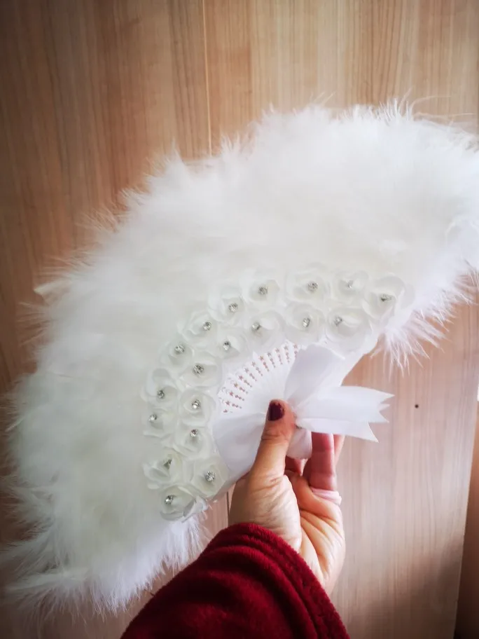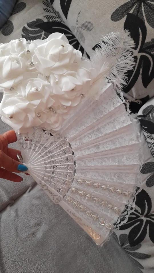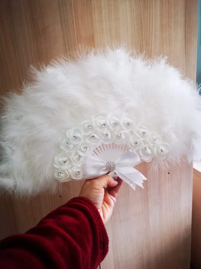 2, elegancki styl: wentylator ozdobiony jest piórami, cyrkoniami, koronkami i kwiatami róży, a elegancki wygląd jest idealny na ślub.