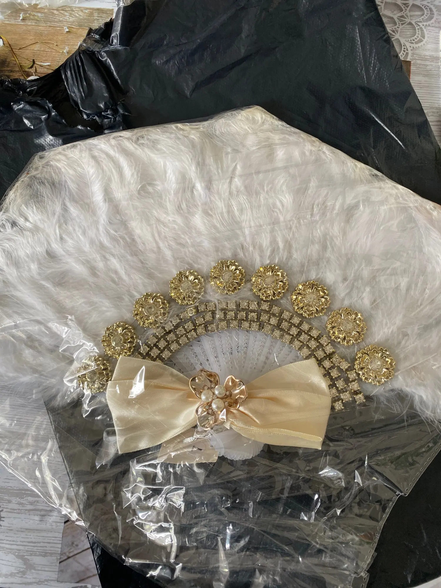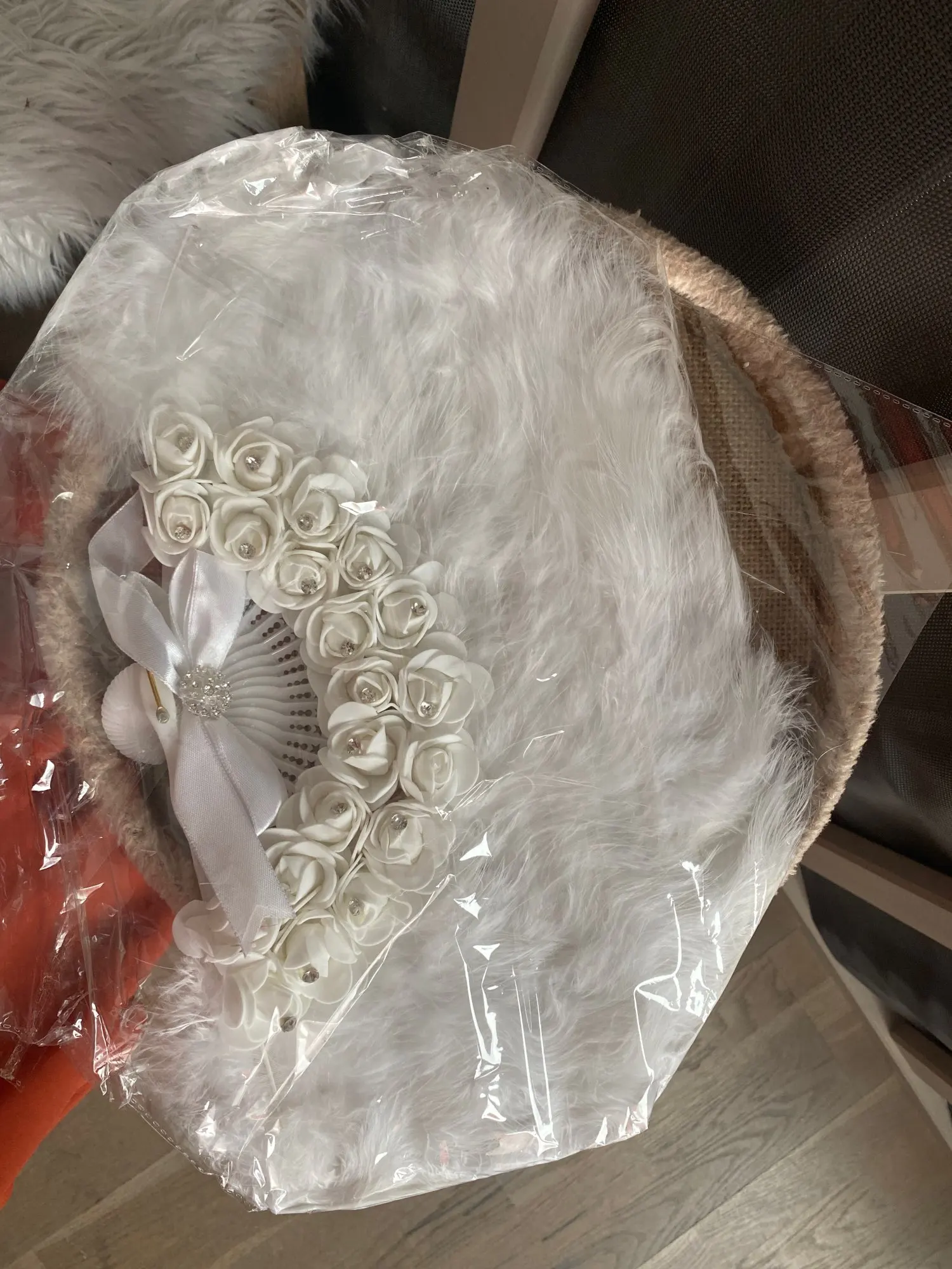 Elegancki styl: wentylator ozdobiony jest piórami, cyrkoniami, koronkami i kwiatami róży, a elegancki wygląd idealnie nadaje się na ślub.
