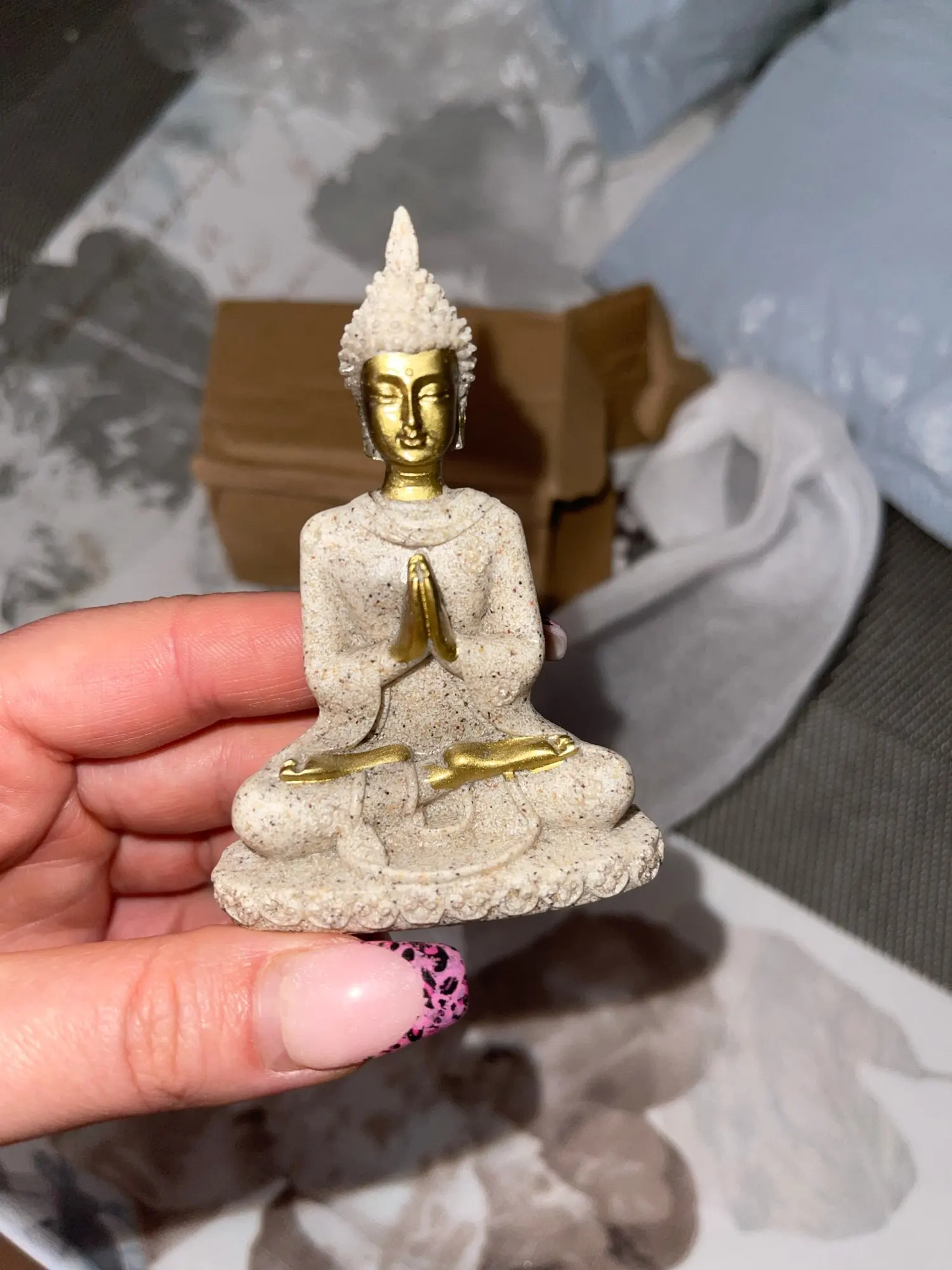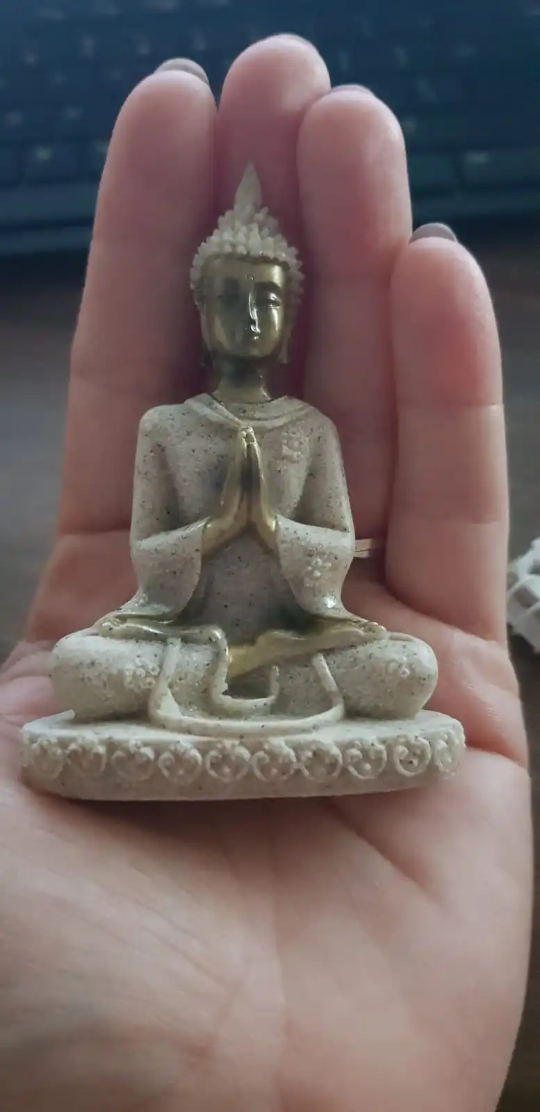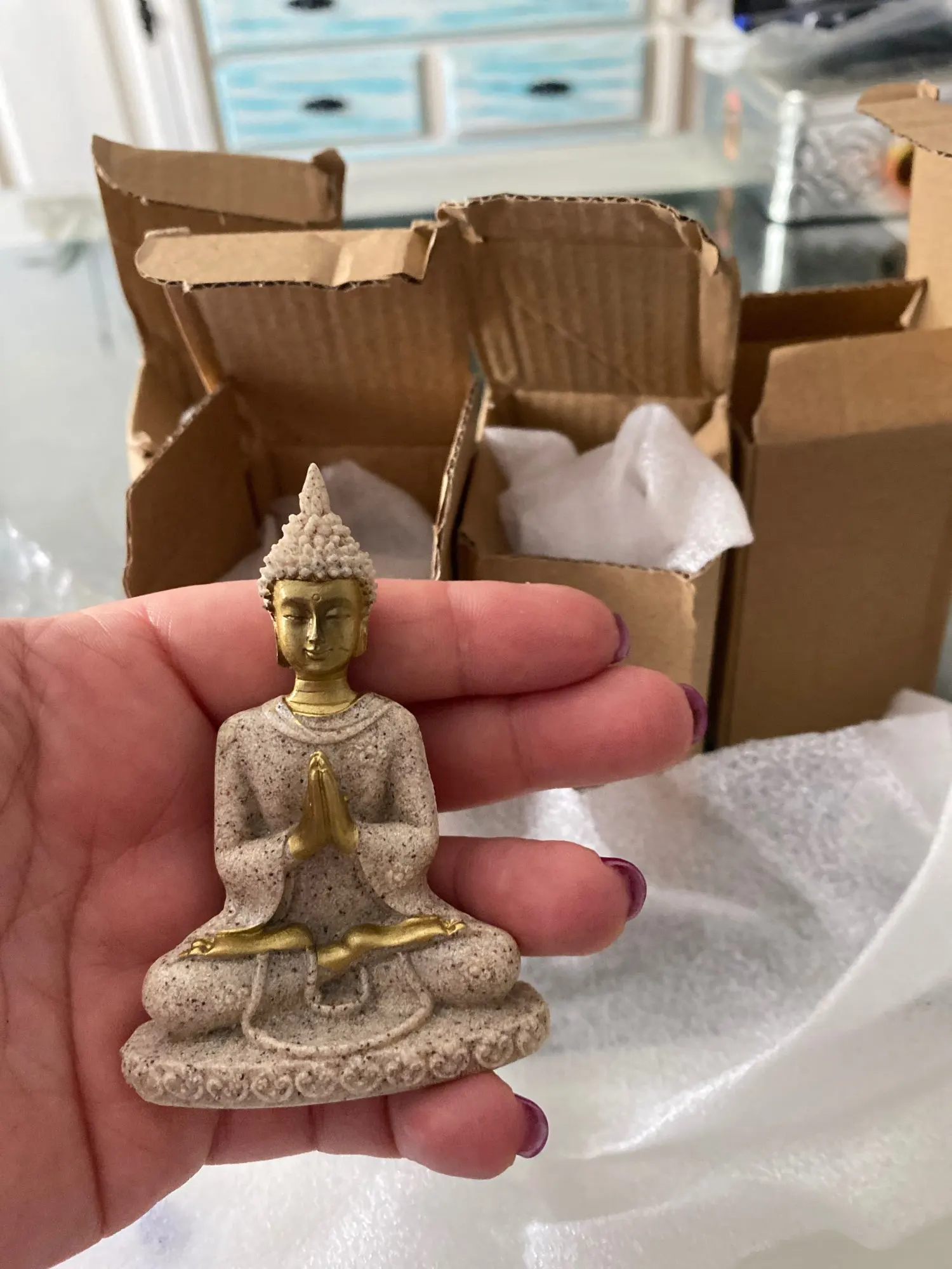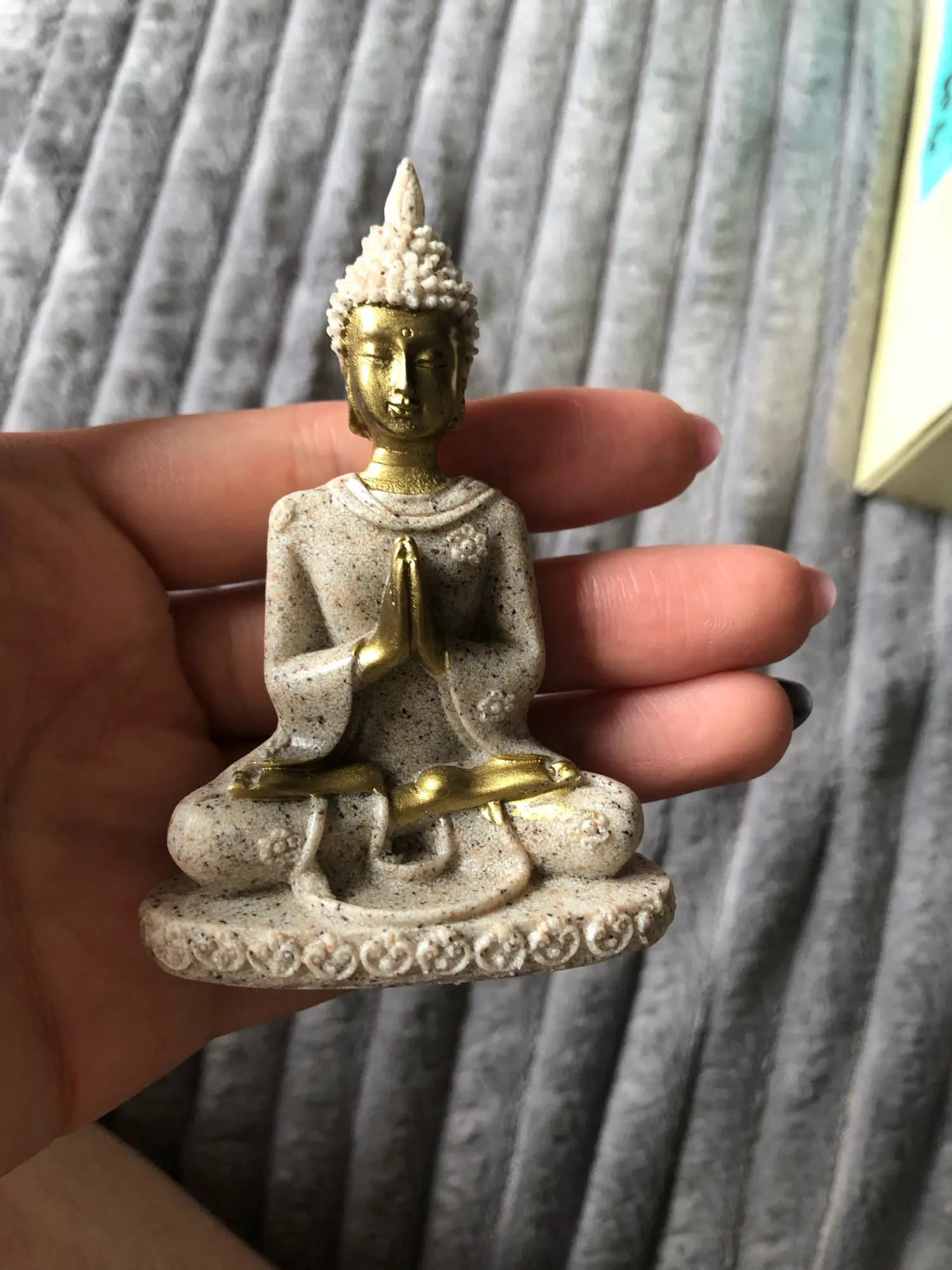 très mignon mini bouddha je l'adore !! parcontre l'emballage était écrasé mais fortune heureusement ce n'était pas brisé j'aurais été triste. Merci !!