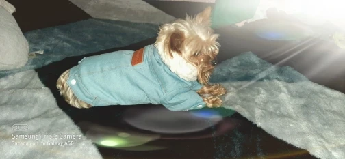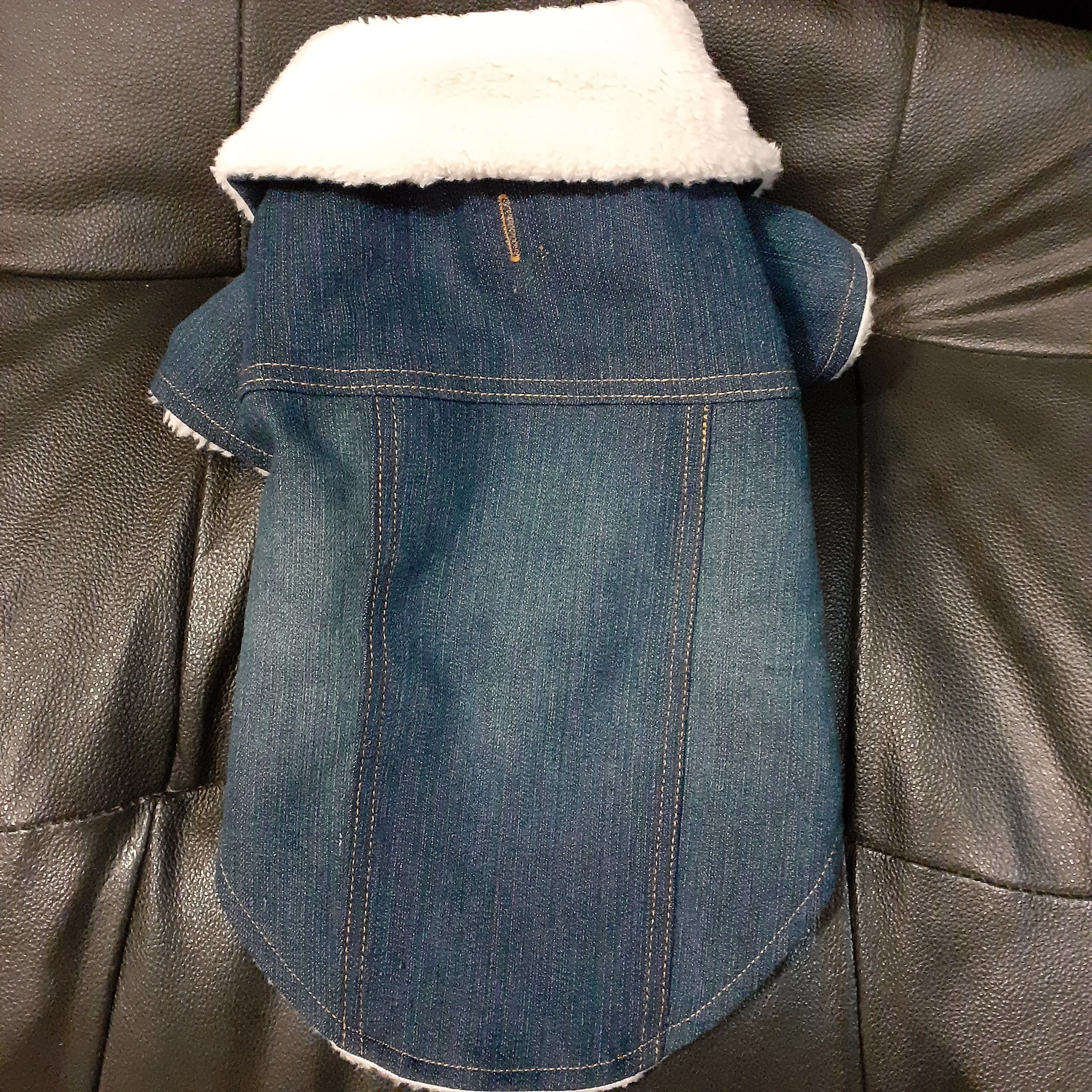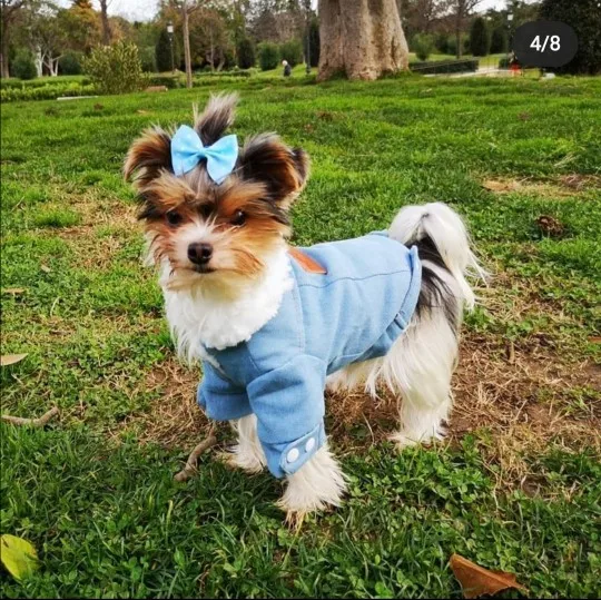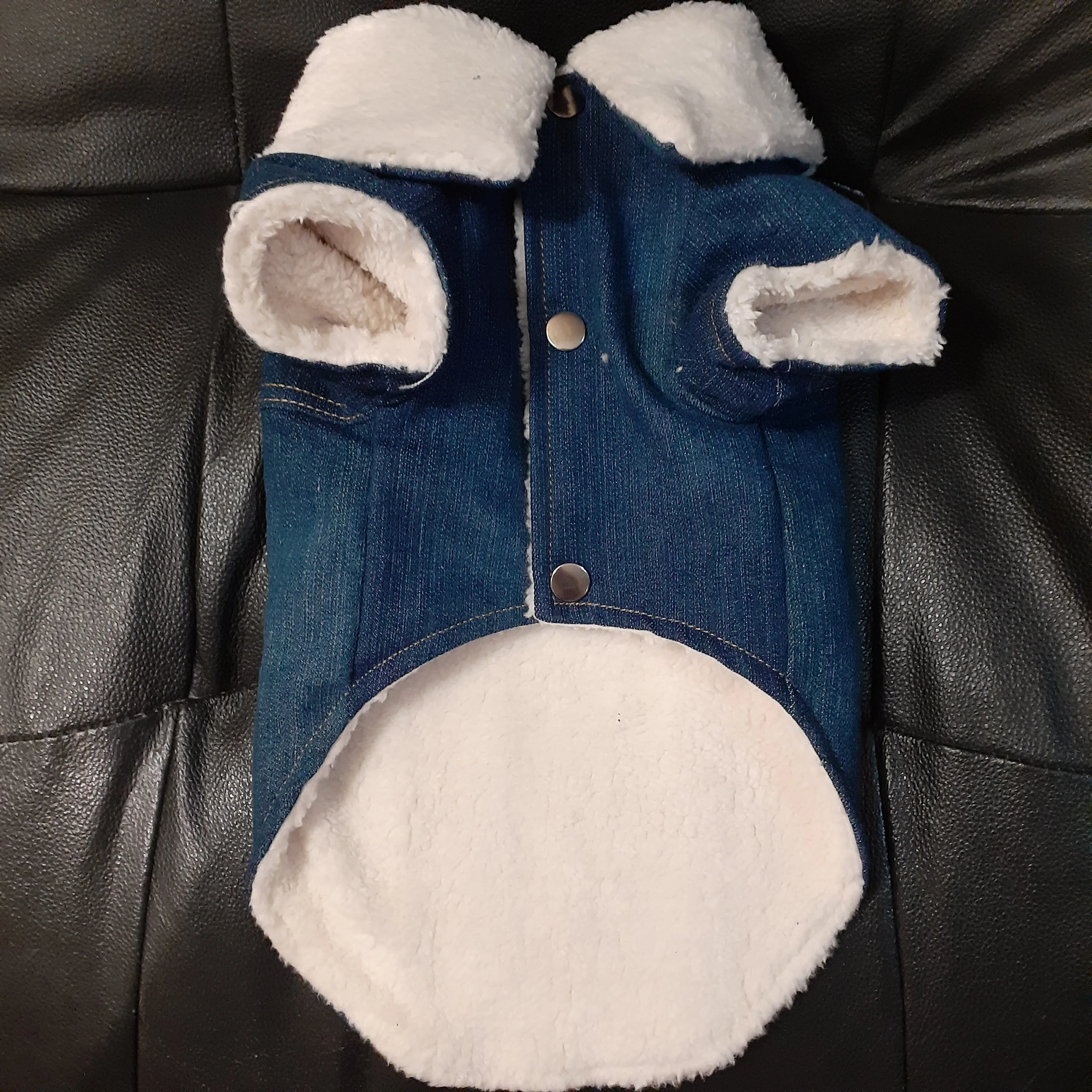 Very nice warm fleece winter denim jacket for my yorkie, 3.2 kg. I bought a size up larger; Size 4 so there can be additional space to wear a sweater inside the jacket for the very cold weather. Also I like that it is larger because it can cover up my dog's whole body length to keep warm. Additionally, I like the small hole in the back of the jacket that I can hook the dog leash through to connect to the harness inside. Thank you to the Seller for great delivery and service and nice quality jacket!
