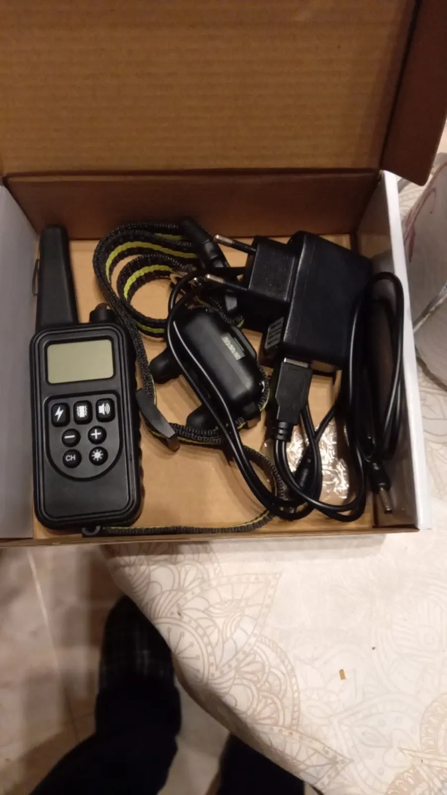 1 X nadajnik zdalnego sterowania + 1 X kołnierz odbiornika + 1 X regulowany pasek nylonowy + 1 X akumulator kabel do ładowania USB + 1 X ładowarka + 1 X stycznik + 1 X instrukcja obsługi