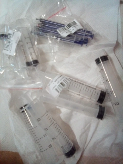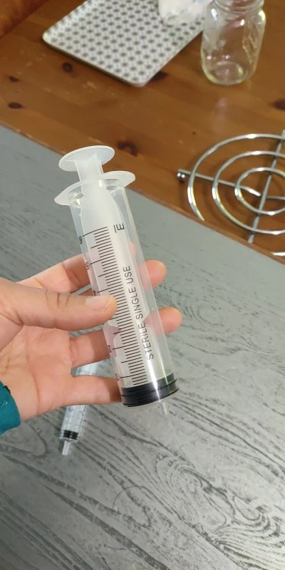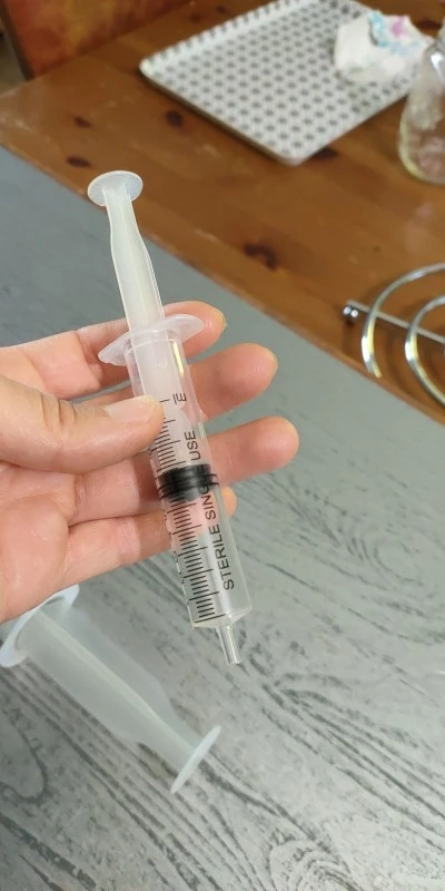 Strzykawka jednorazowa, bez igła podskórna, bardzo wygodne.