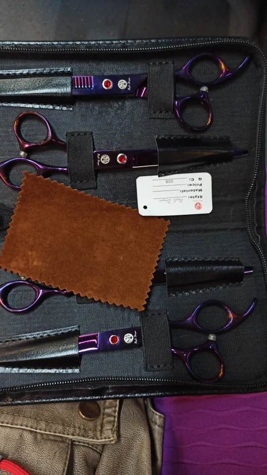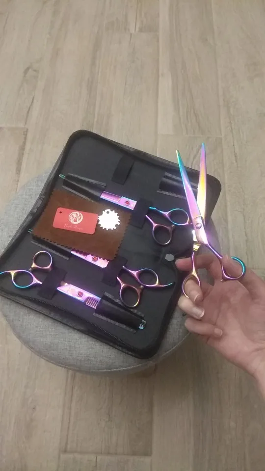 Fioletowy smok 7.0 Cal profesjonalne nożyczki do sierści dla psa Grooming wysokiej jakości proste i przerzedzenie i zakrzywione ścinanie 4 sztuk/zestaw