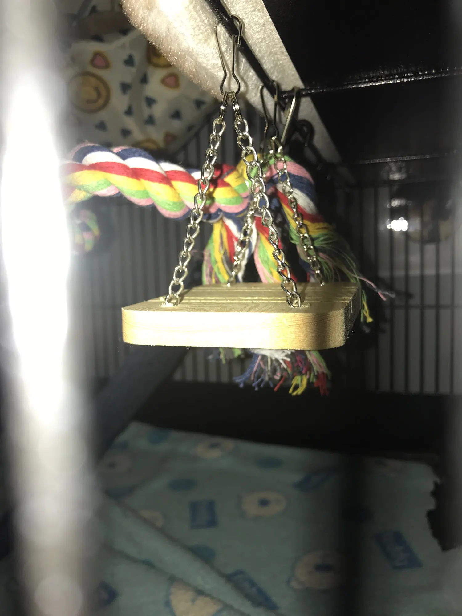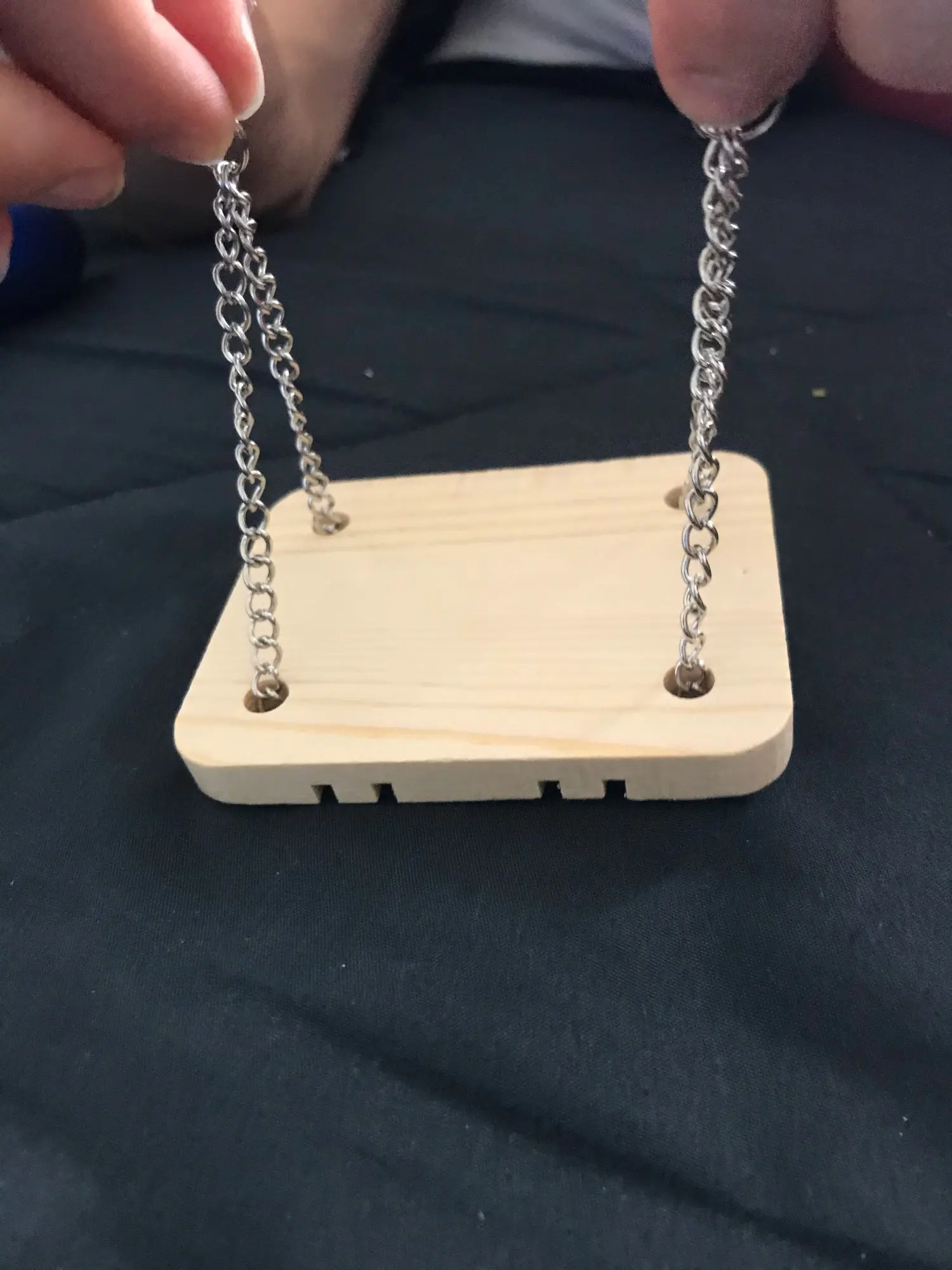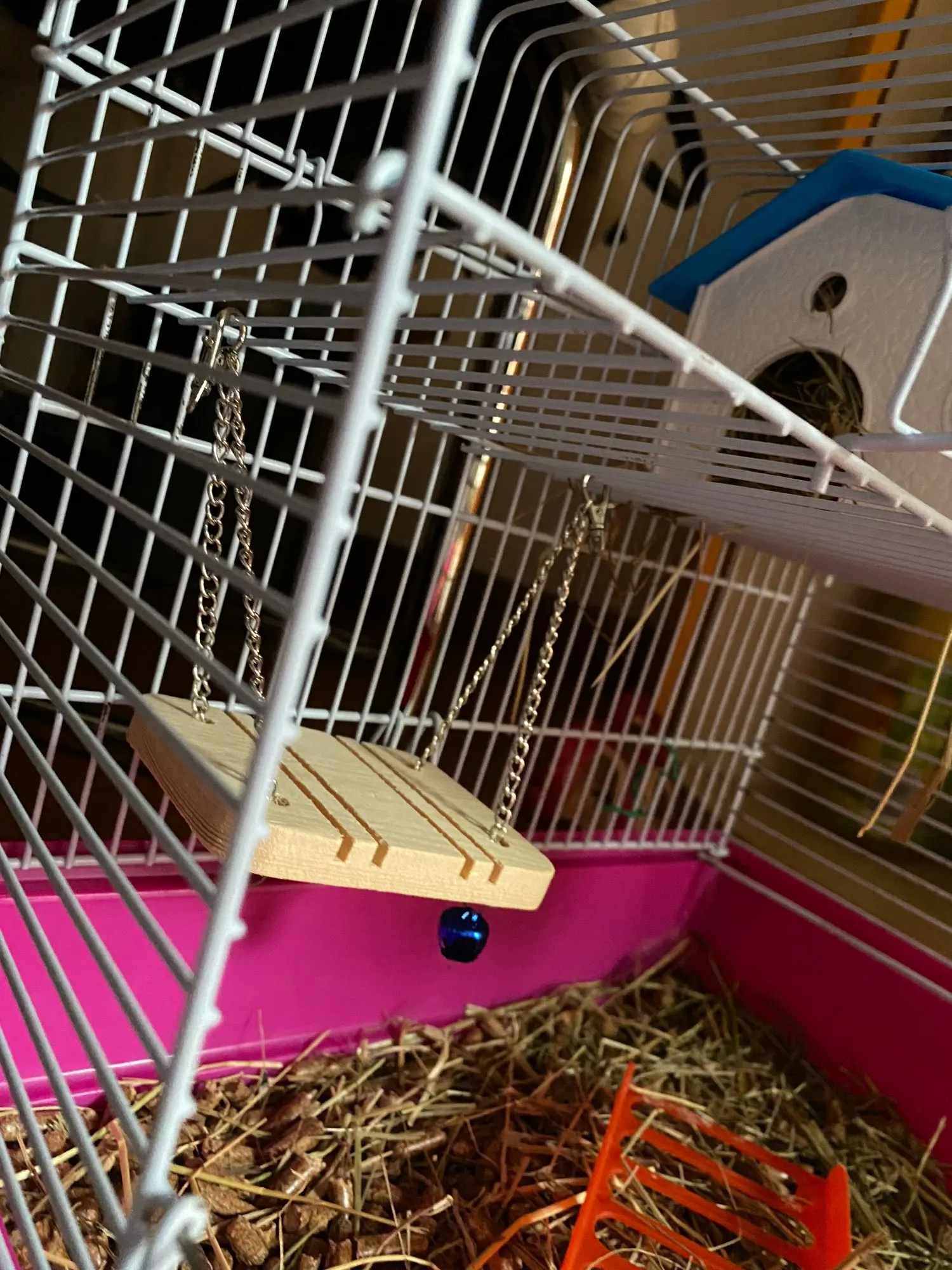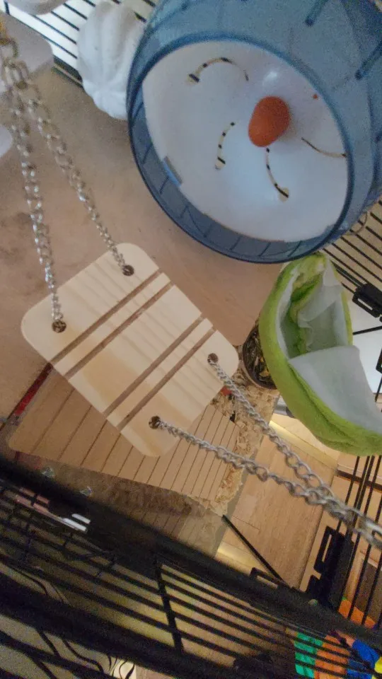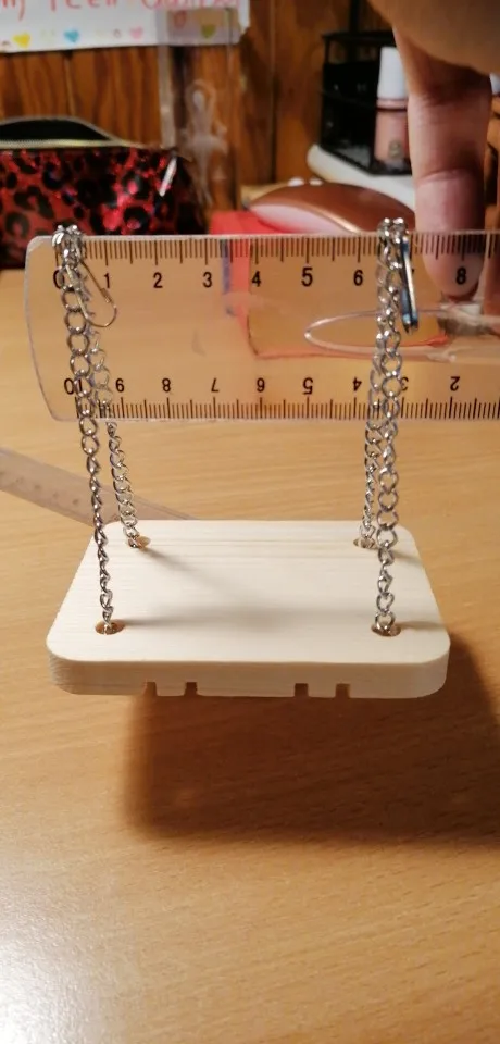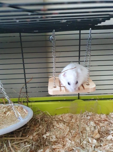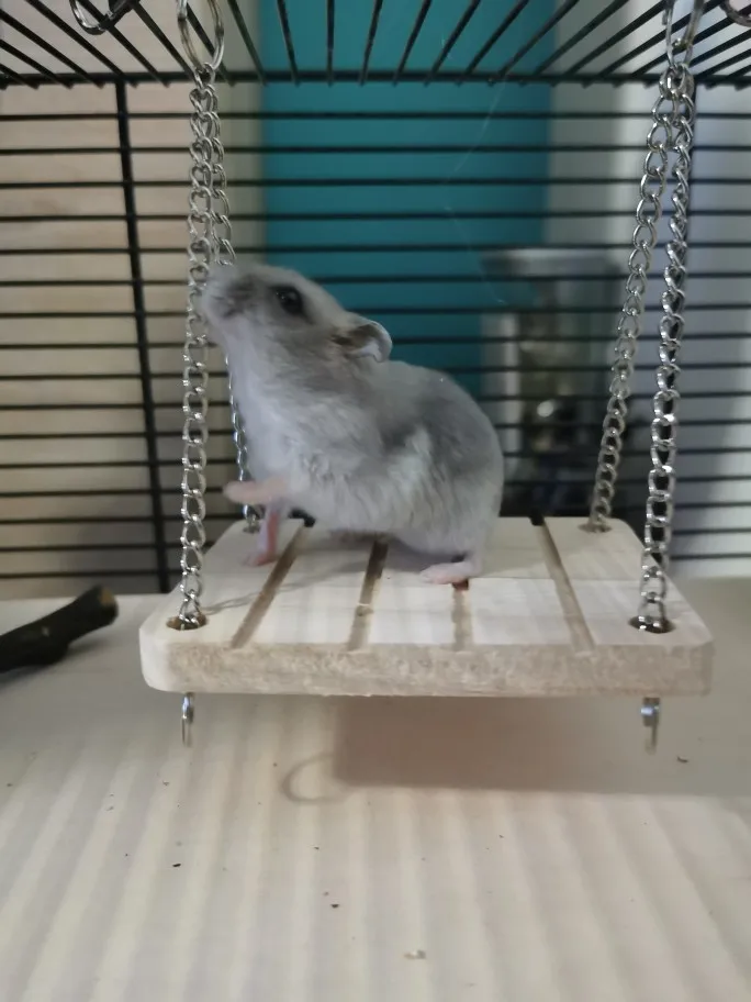 Belle balançoire je pensais qu’elle serais plus grande mais un peut petite à mon goût (pour des rats) par contre je pense que pour des petits hamsters c’est une bonne taille ;)
