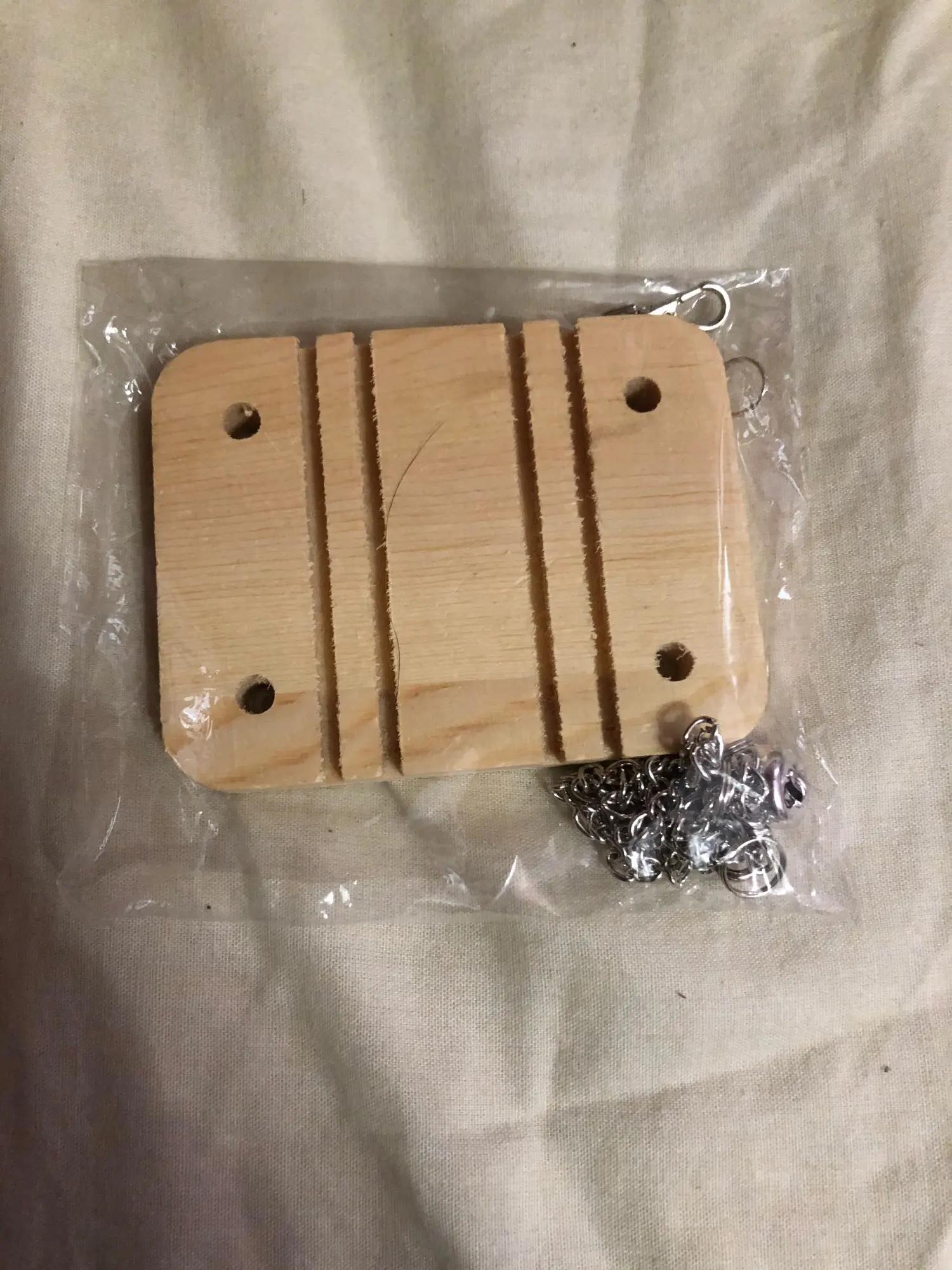 Es igual que en la foto. Pero creo que es ideal para hamsters pequeños. Mi hamster es de los grandes y el columpio es pequeño para el. Otra cosa es que deberia ser un poco mas larga las cadenas , pero a parte de eso estoy contenta