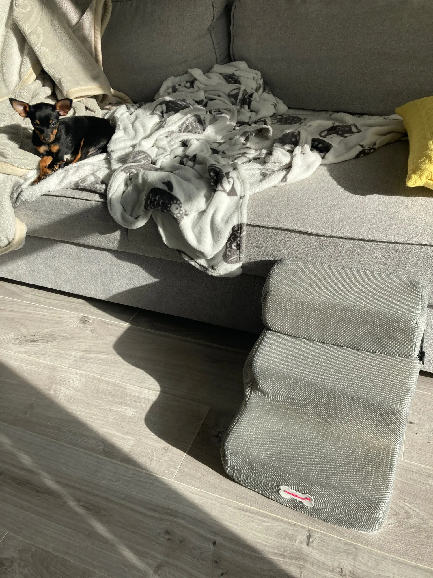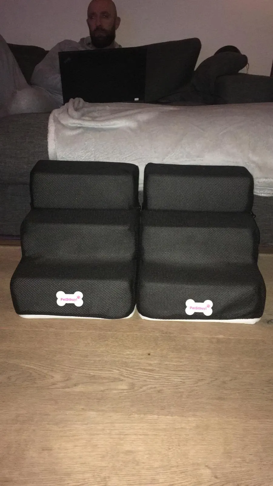 Schody są piękne, pinczer miniaturowy doskonale radzi sobie z wchodzeniem i schodzeniem po nich, nie przesuwają się na panelach podczas poruszania się po nich psa. Dostawa ok 3 tygodnie do Polski