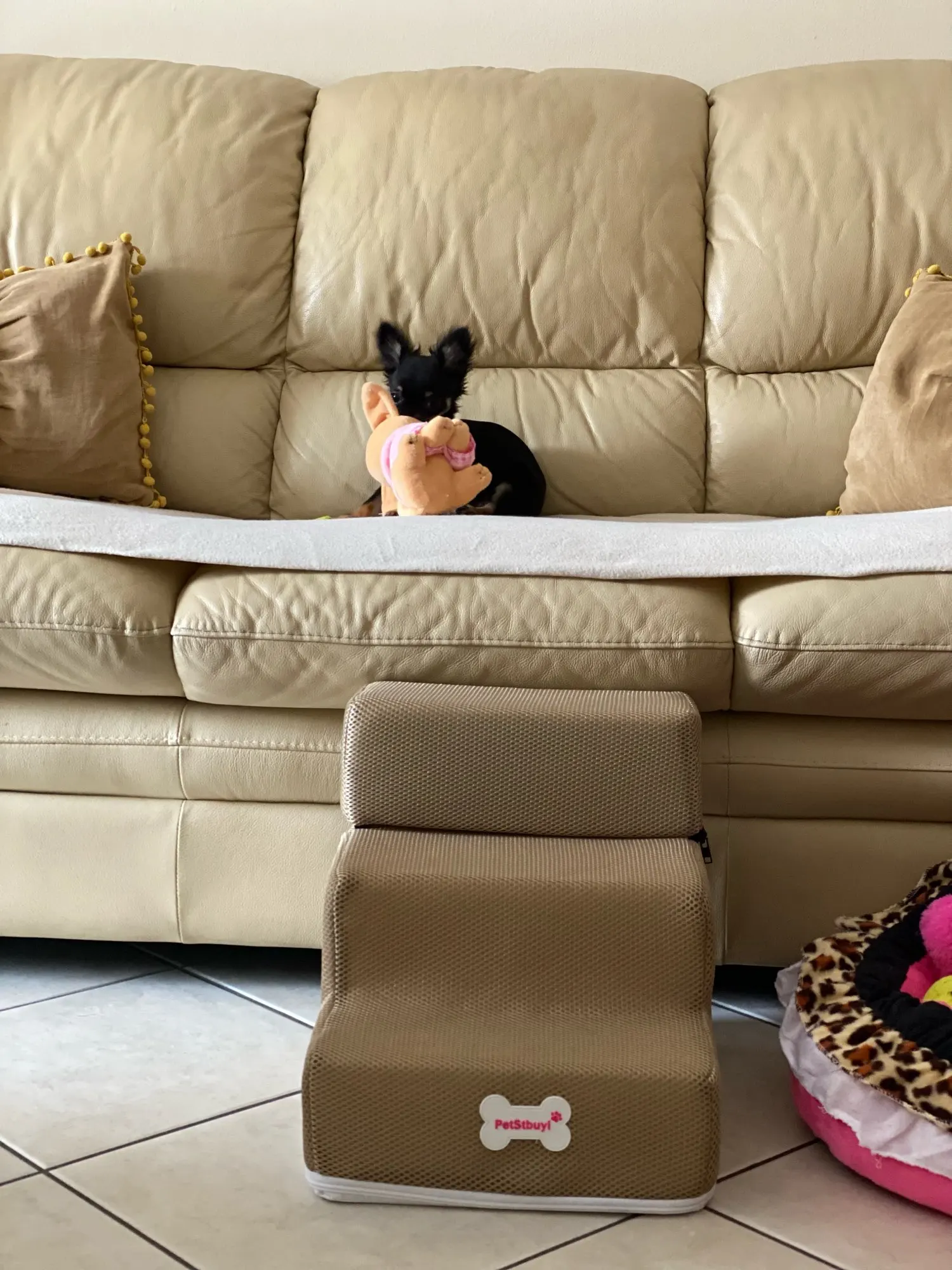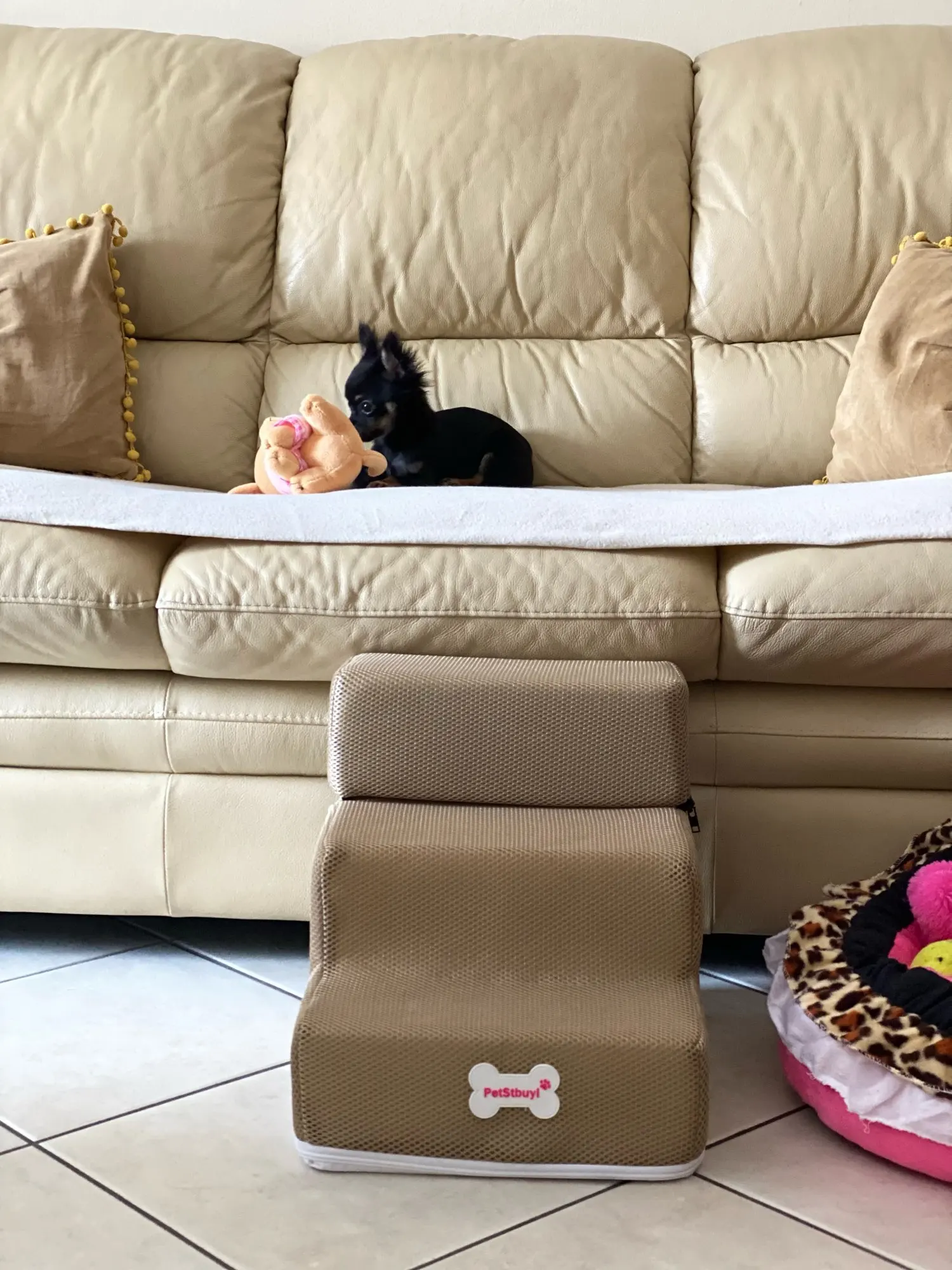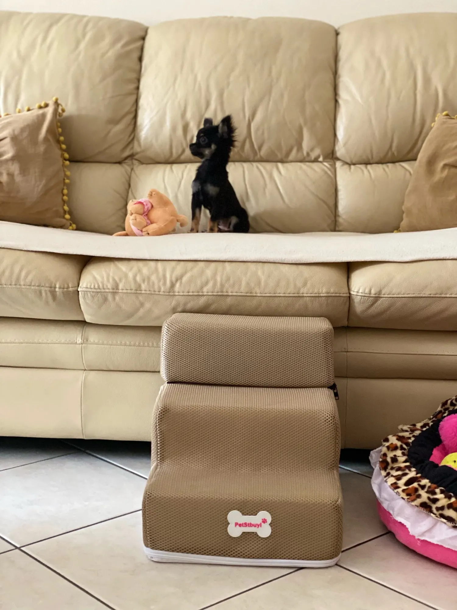 Very cute stairs for my seventeen year old cat, she is very happy to easily walk of the couch. Very fast delivery, I will order more