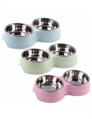 Pet Dog Duble Bowl Kitten Food Feefer ze stali nierdzewnej małe psy koty picie naczynia do karmienia zwierząt na artykuły dla zwierząt miski do karmienia