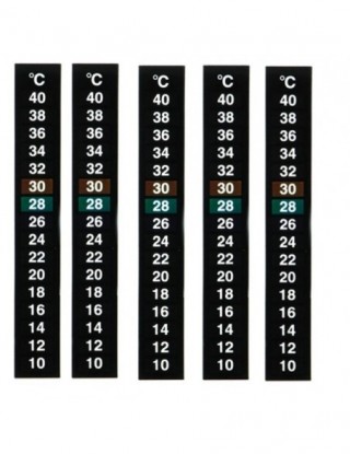 Termometr zmienia kolor w zależności od temperatury otoczenia. Jeśli temperatura otoczenia wynosi 27 ° c, tło znaku skali 27 ° c zmieni kolor, a inne znaki skali pozostaną czarne.