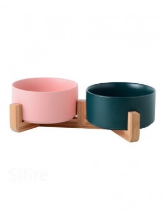 Ceramiczny kot miska dla psa danie z drewniana podstawka nie wyciek karma dla zwierząt domowych podajnik wody koty małe psy misk
