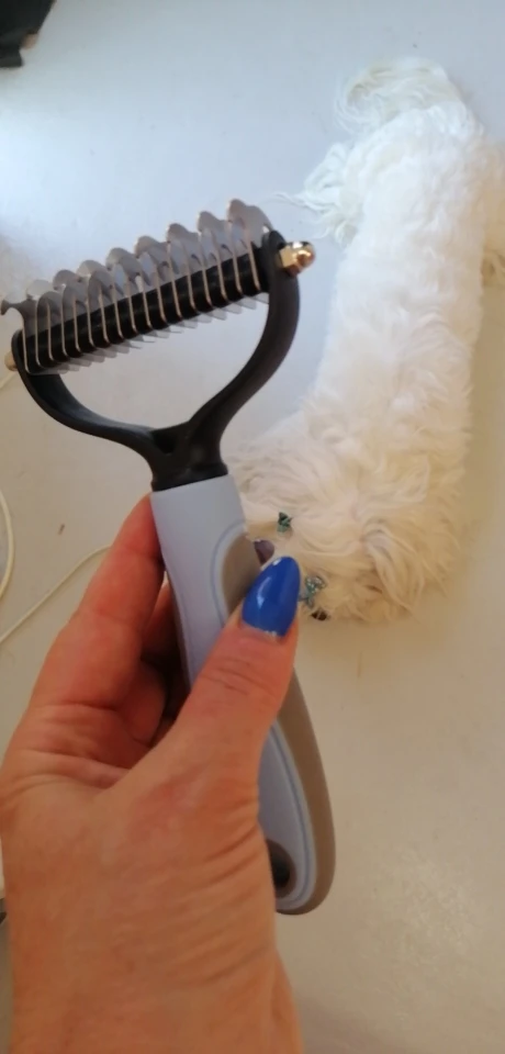 Fantástico para mi gato de pelo largo. No sé deja cepillar mucho y en 3 min le he sacado un montón de pelo. Va muy bien para los nudos, aunque hay que usar la tijera para cortarlos.