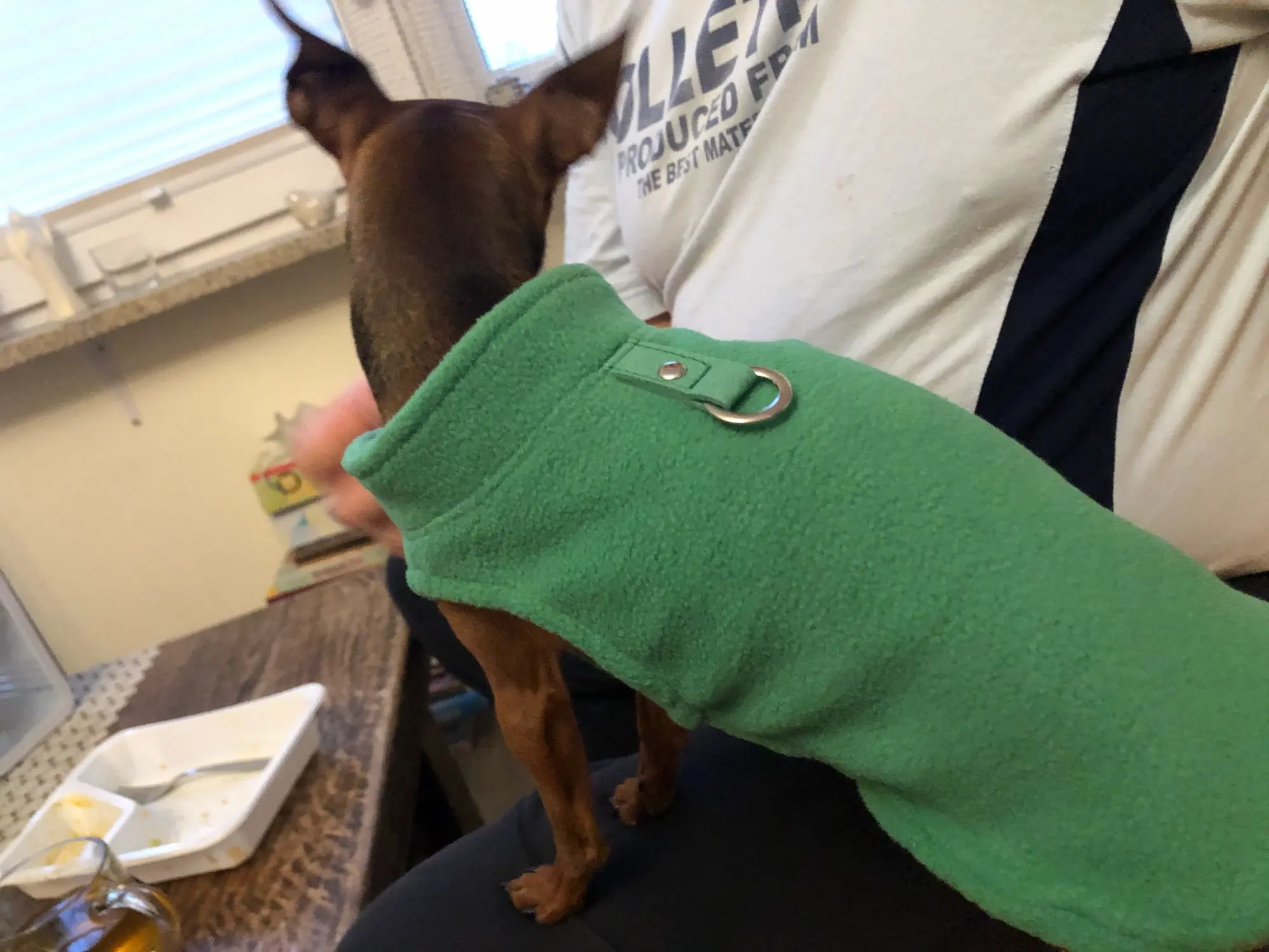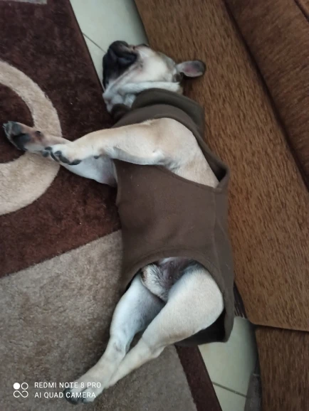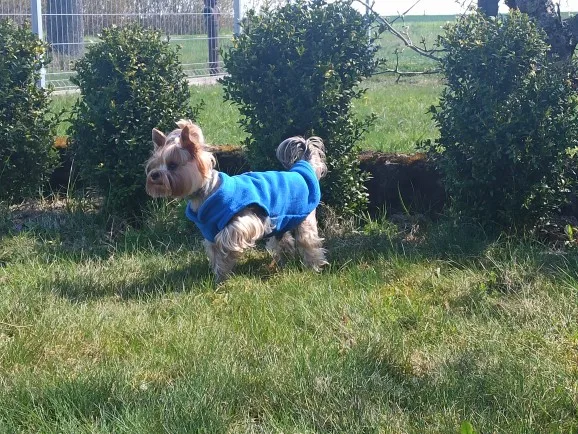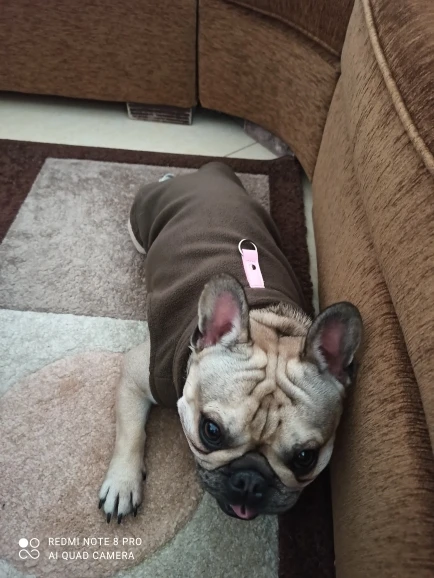 Muy contenta. Lo único que no me convence es que no tiene botones/cremallera o velcro. Entra como un jersey. Poco cómodo para poner y quitar. Compré la talla L. Mi perro pesa 7,5 kg