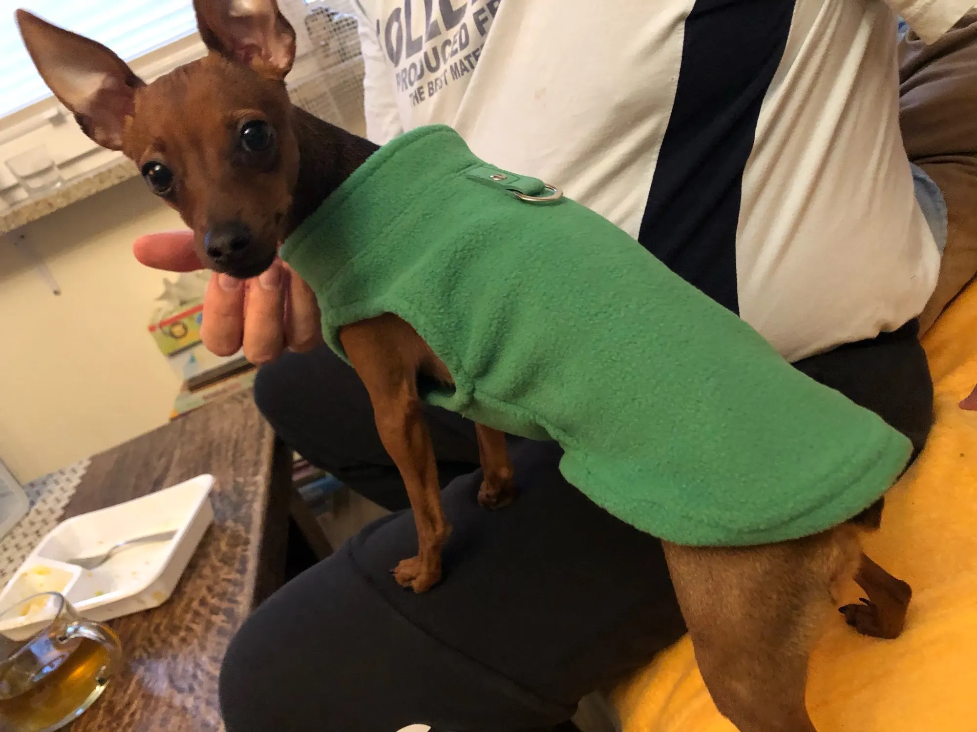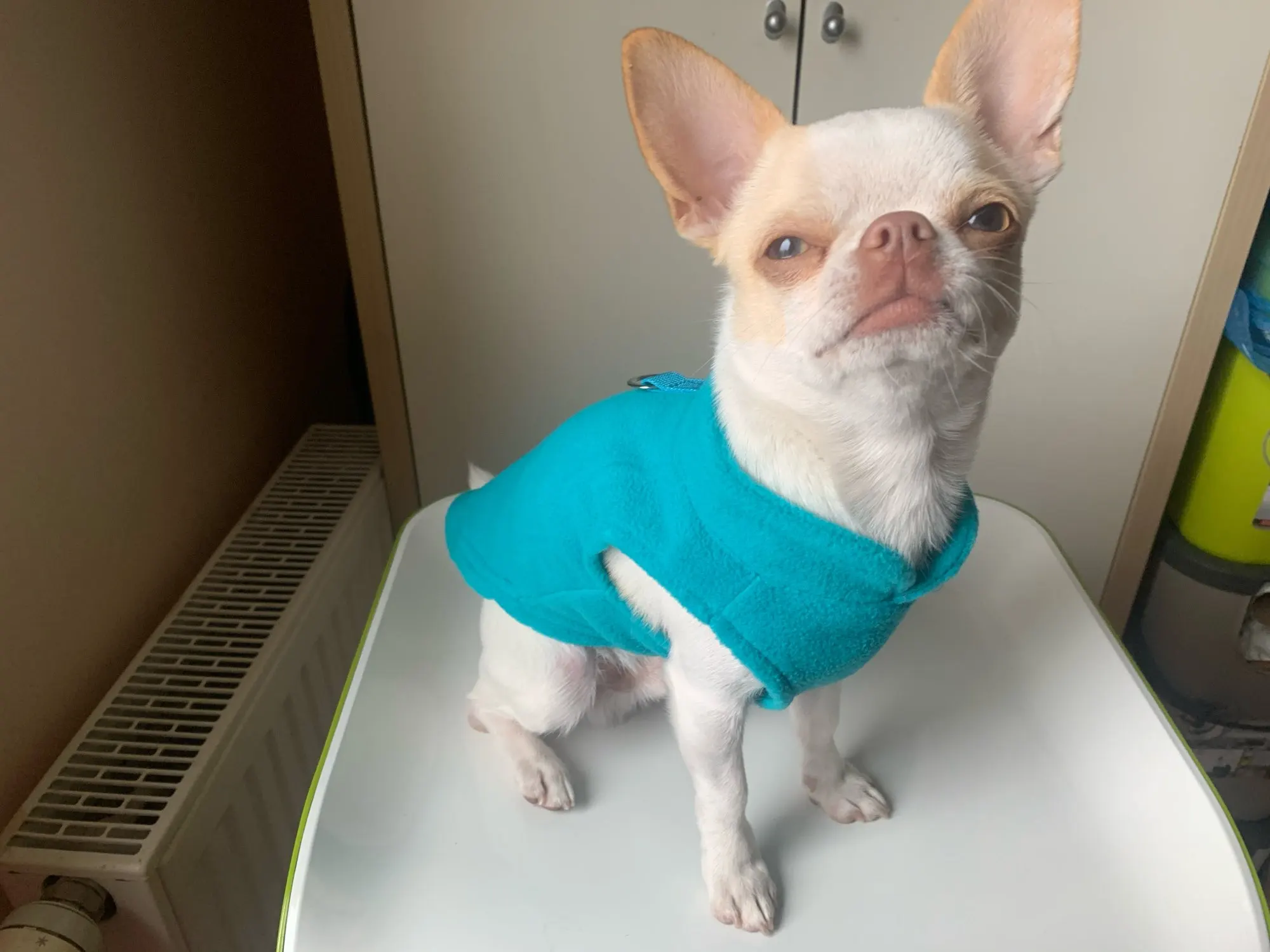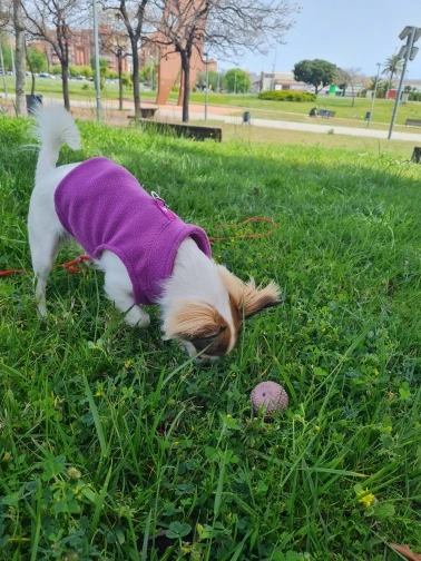 Muy contenta. Lo único que no me convence es que no tiene botones/cremallera o velcro. Entra como un jersey. Poco cómodo para poner y quitar. Compré la talla S. Mi perra pesa 1.75kg.