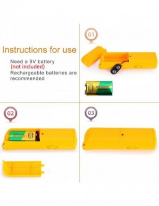 Łatwy w obsłudze:Najpierw otwórz pokrywę baterii, a następnie włóż 1 sztukę baterii 9V(Brak w zestawie), Dźwięk jest słyszalny tylko dla zwierząt domowych, w końcu włącz przełącznik i może działać dobrze, w razie potrzeby mogą również służyć jako latarka.