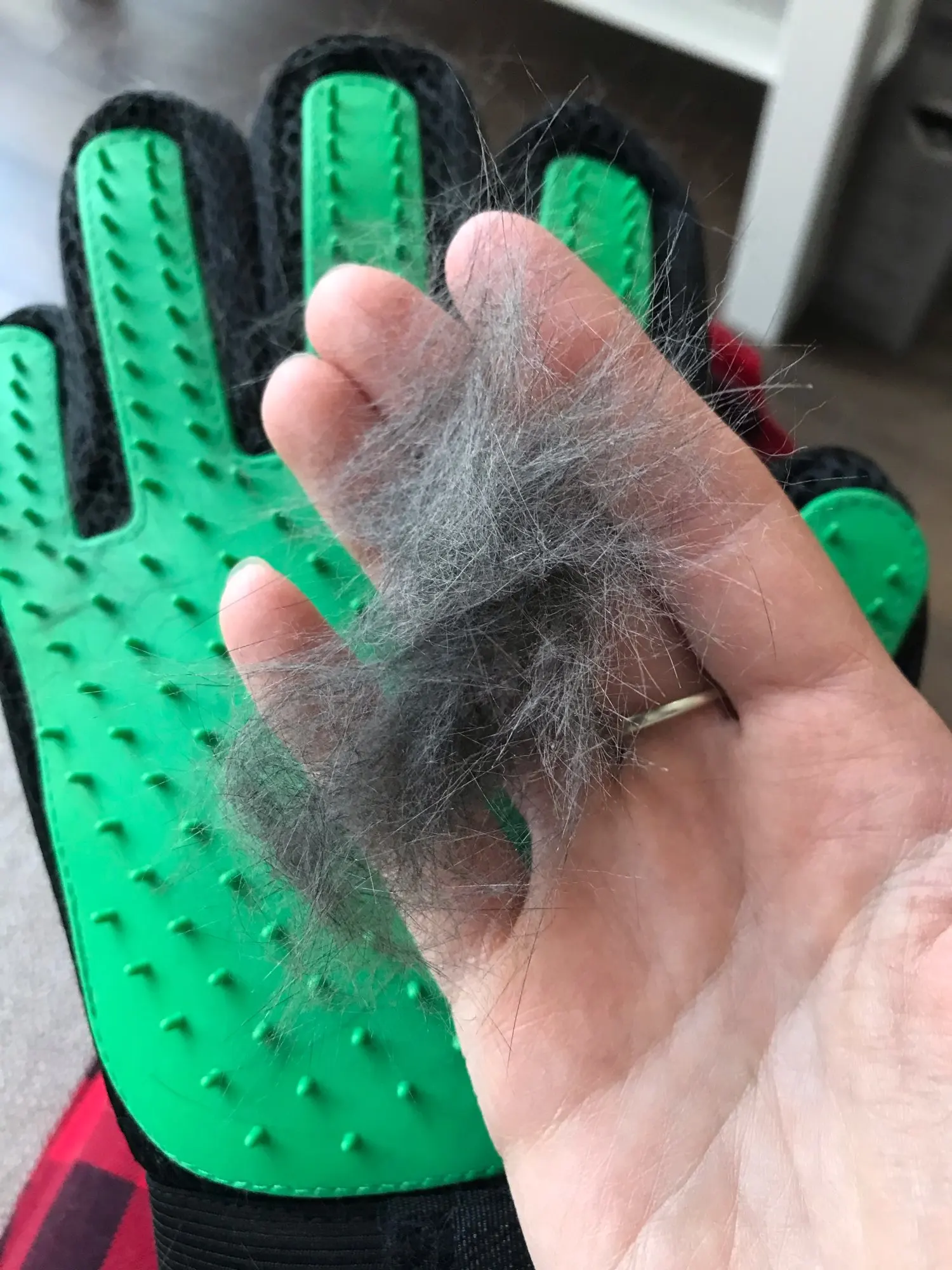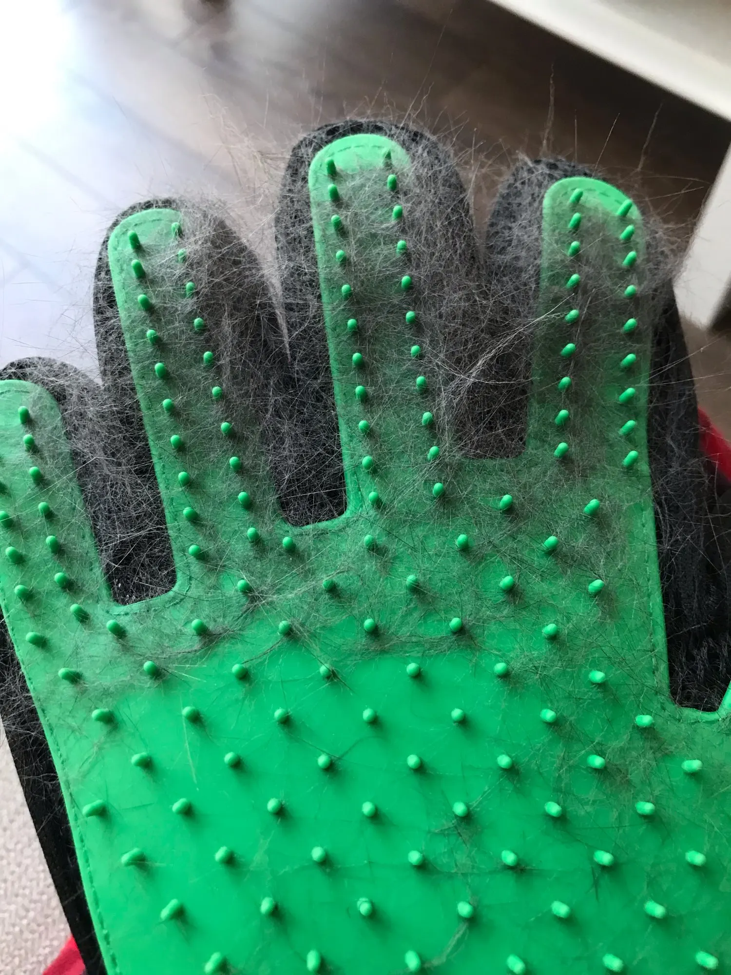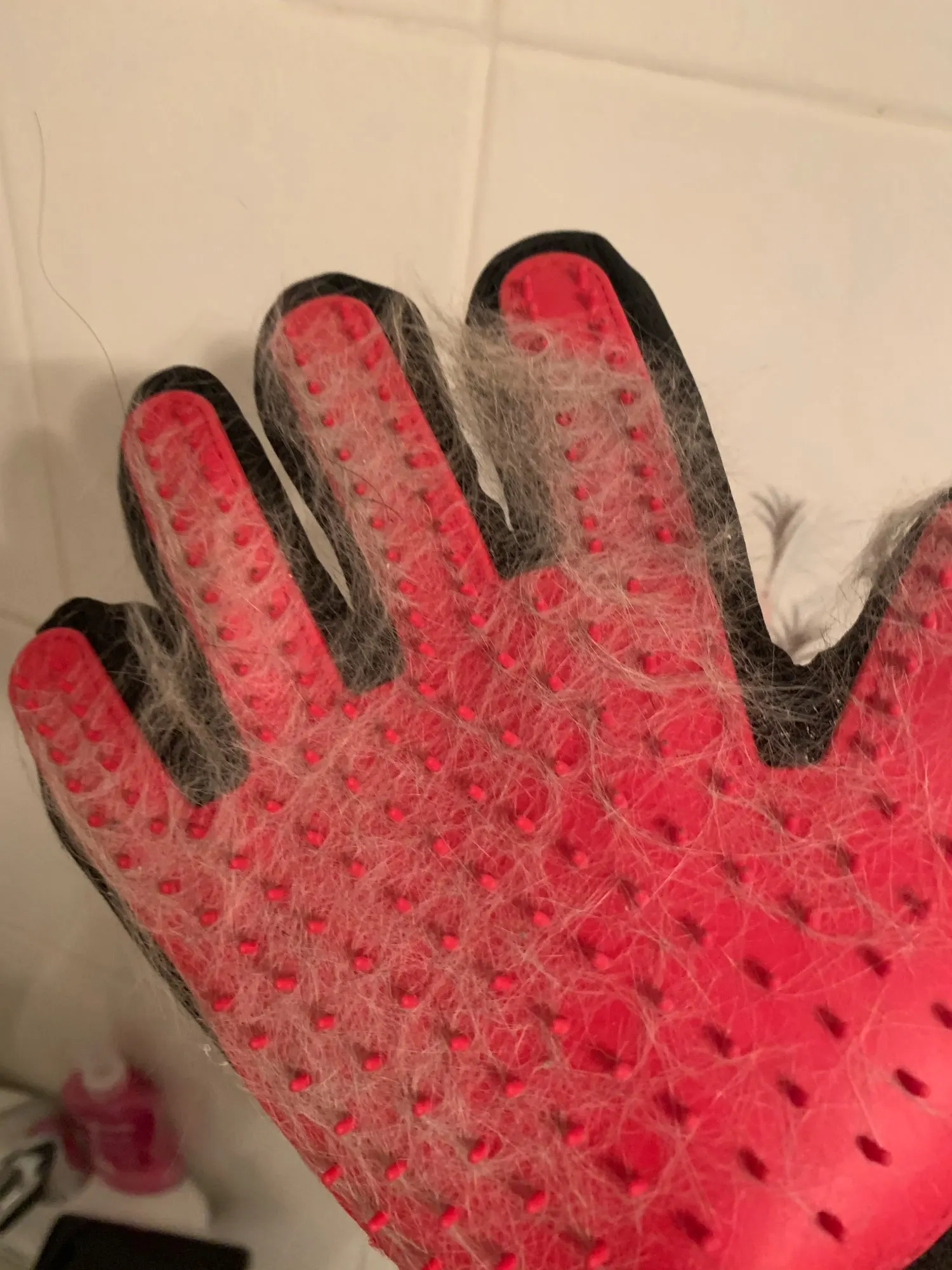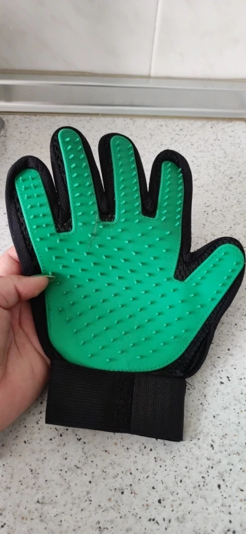 Depilator:Idealny dla długich, krótkich i kręconych psów, kotów, koni i innych zwierząt domowych, szybko, delikatnie i skutecznie pielęgnuje włosy; Liniejąca sierść przykleja się do rękawicy, ułatwia obieranie i wyrzucanie włosów