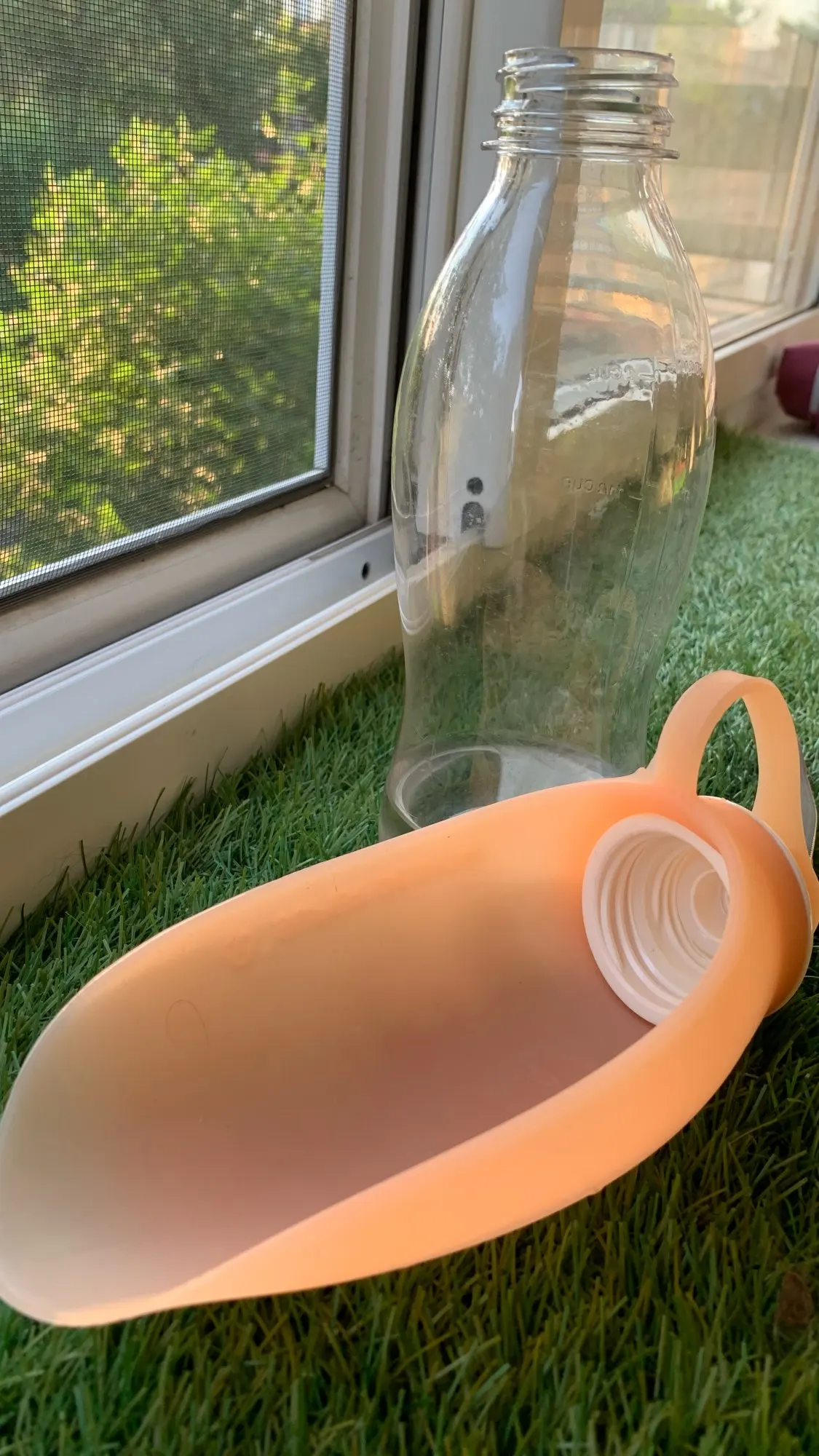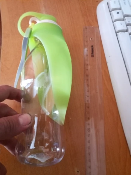 Бутылка удобная. Собака пьёт с удовольствием. Пластик тонковат для бутылки, но это не страшно ;) Доставили за неделю.