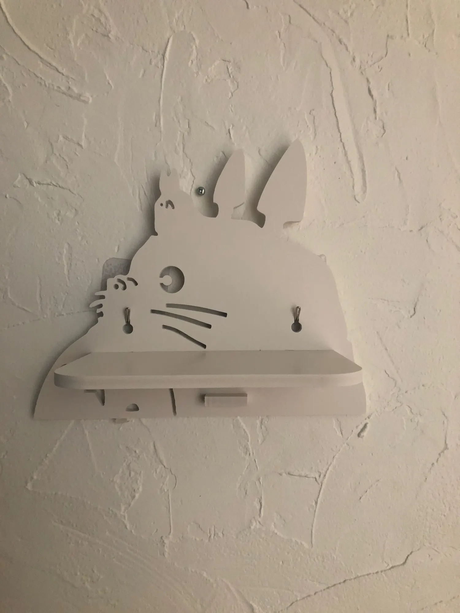 Полки не очень прочные и большой вес не выдержат, но для ночника или телефона подойдёт. Комплектные крючки не советую использовать.