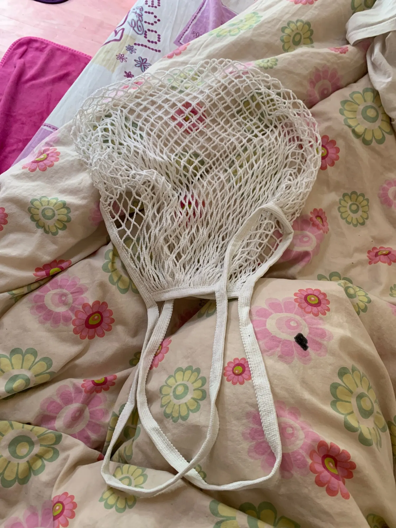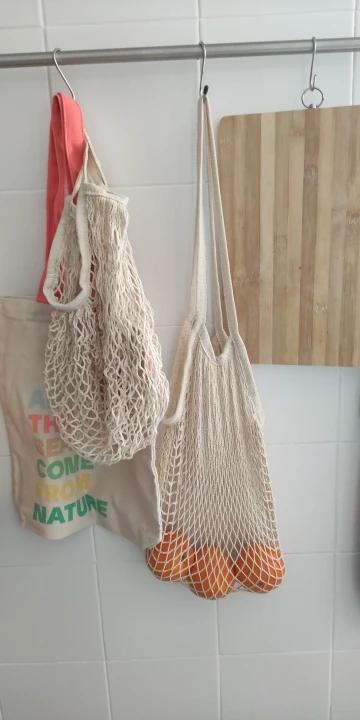 【Duża pojemność】 może pomieścić do 18 kg (10kg). Bawełniana siatka naturalnie się rozciąga, jest bardziej przestronna. Wygląda znacznie mniej niż na zdjęciach, jednak kiedy zaczynasz napełniać go towarami, rozciąga się i rozszerza ogromnie.