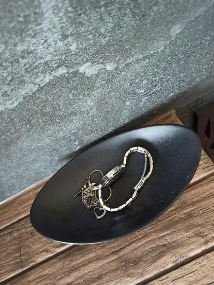 Owalny czarny pierścień danie taca na biżuterię klucz Organizer z tacką kredens Decor klucz danie biżuteria miska dekoracyjne danie organizator