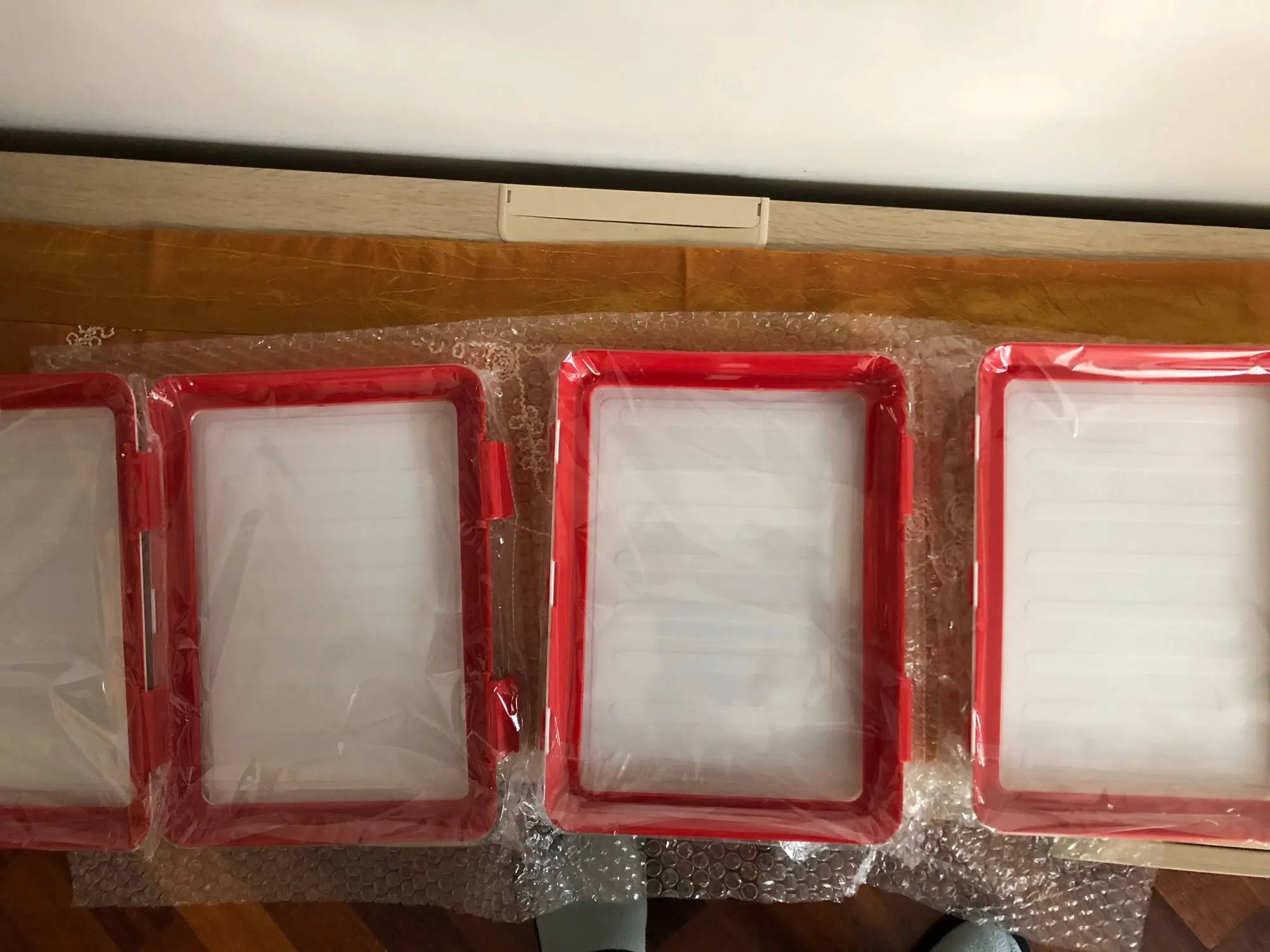 Tiempo de entrega: 10 días Bien embalado. El material es plástico, duro, están en buen estado (aunque sucios). Las medidas:30 largo x 22 Ancho. Va un poco duro para abrir el producto, ir con cuidado. Actualizaré la información a medida que se use.