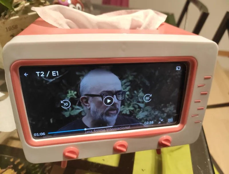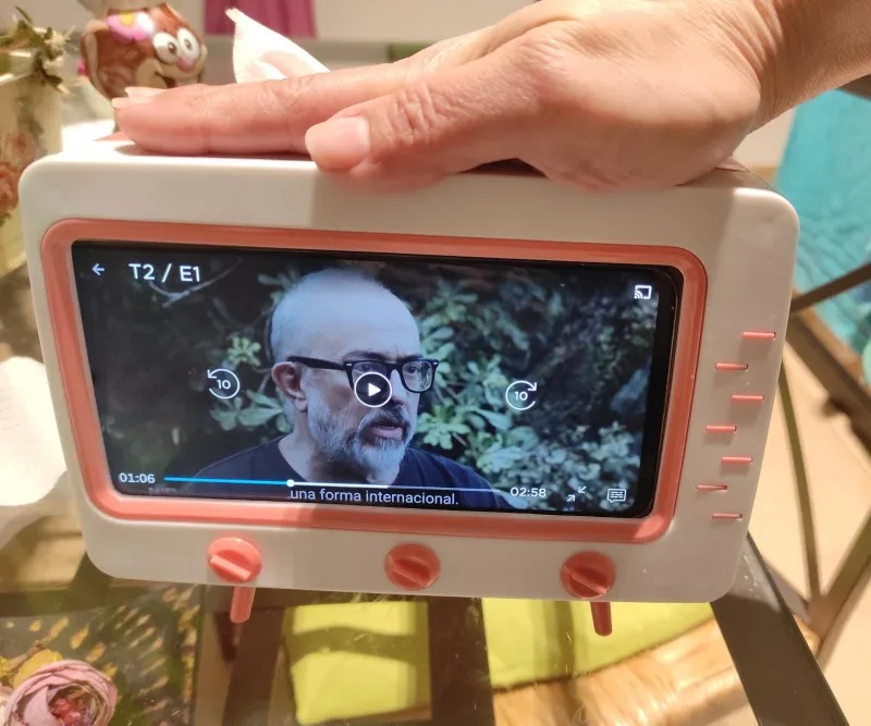 • Kreatywny wygląd telewizora z funkcją stojak na telefon komórkowy.