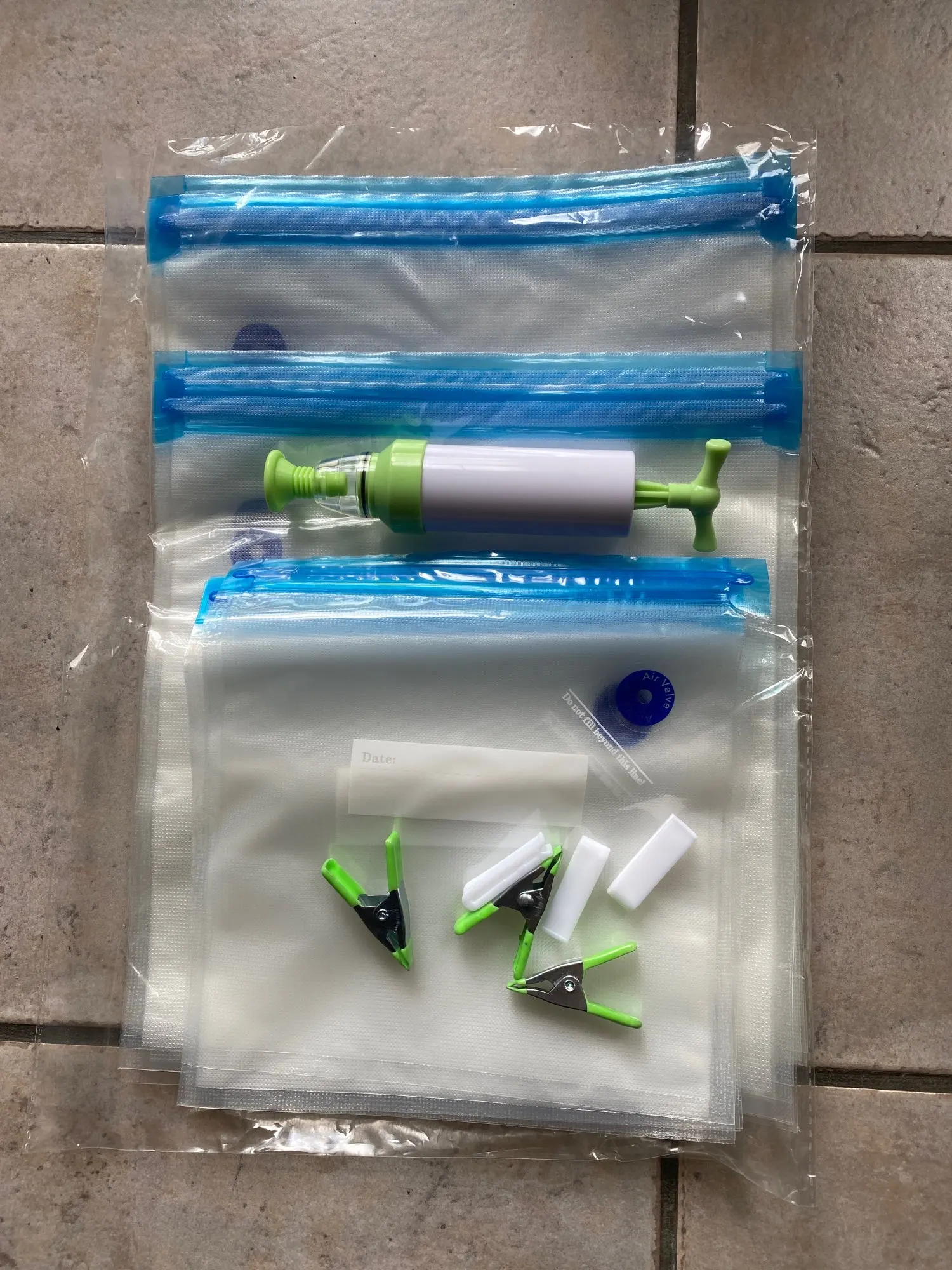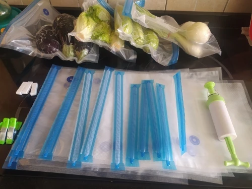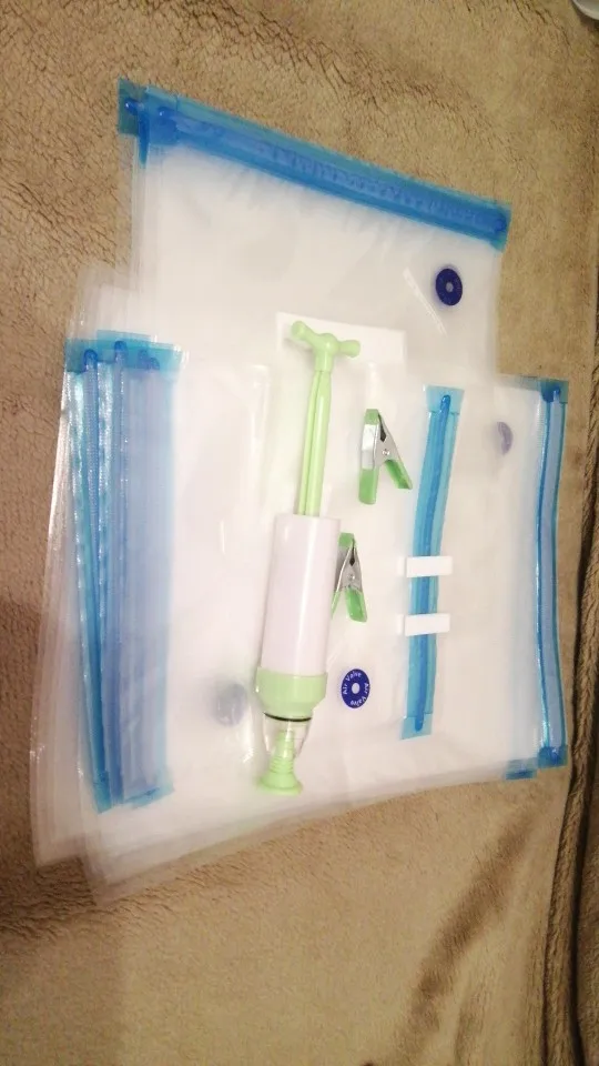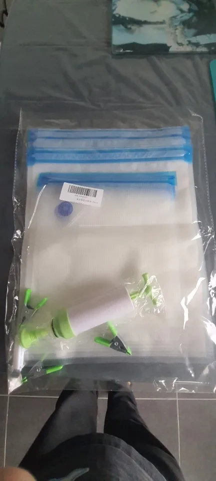 Specyfikacja: Materiał: PA + PE Materiał pompy ręcznej: ABS Rozmiar: 22*21cm / 28*26cm / 34*26cm Metoda otwierania: zamek błyskawiczny Lista pakowania 1 (17 sztuk): 15 x torebki próżniowe z żywnością (5 małych, 5 średnich, 5 dużych) 2 x plastikowe klipsy Lista pakowania 2 (20 sztuk): 15 x torebki próżniowe z żywnością (5 małych, 5 średnich, 5 dużych) 1 x pompa ręczna 2 x plastikowe klipsy 2 x metalowe klipsy