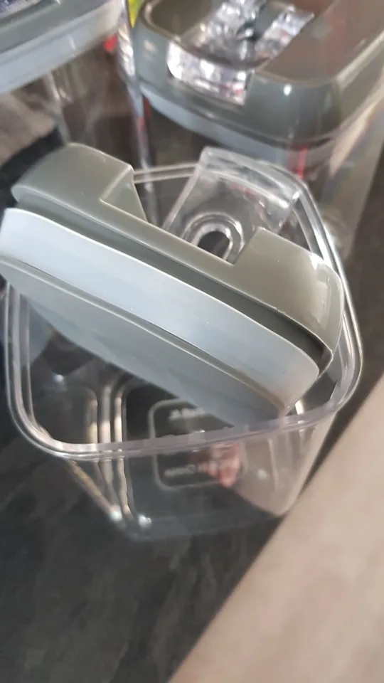 Szczelne, aby żywność była sucha i świeża-Za pomocą specjalnego mechanizmu uszczelniającego można bezpiecznie otwierać lub zamykać nasze plastikowe pojemniki za pomocą tylko dwóch palców. Wystarczy obrócić pierścień, aby otworzyć lub obrócić pierścień w dół, aby zablokować i uszczelnić.