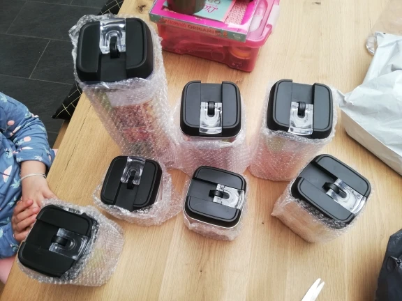 Genial, llego 4 días antes de lo previsto, la mensajería nueva muy bien, los botes perfectos, cierran herméticamente, material resistente,embalados perfecto y caben muchas cosas. 100% recomendable mucho mejor de lo esperado.