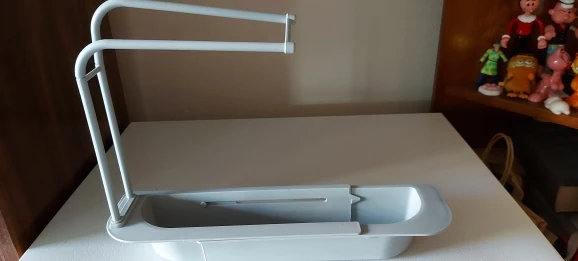 non si adatta molto bene al mio lavandino quindi mi tocca tenerlo in altro modo, le aste non sono molto resistenti, si piegano quando metti lo straccio umido. però la consegna estata super veloce ecco perchéle 4 stelle, in Italia 18 giorni.
